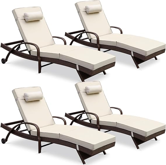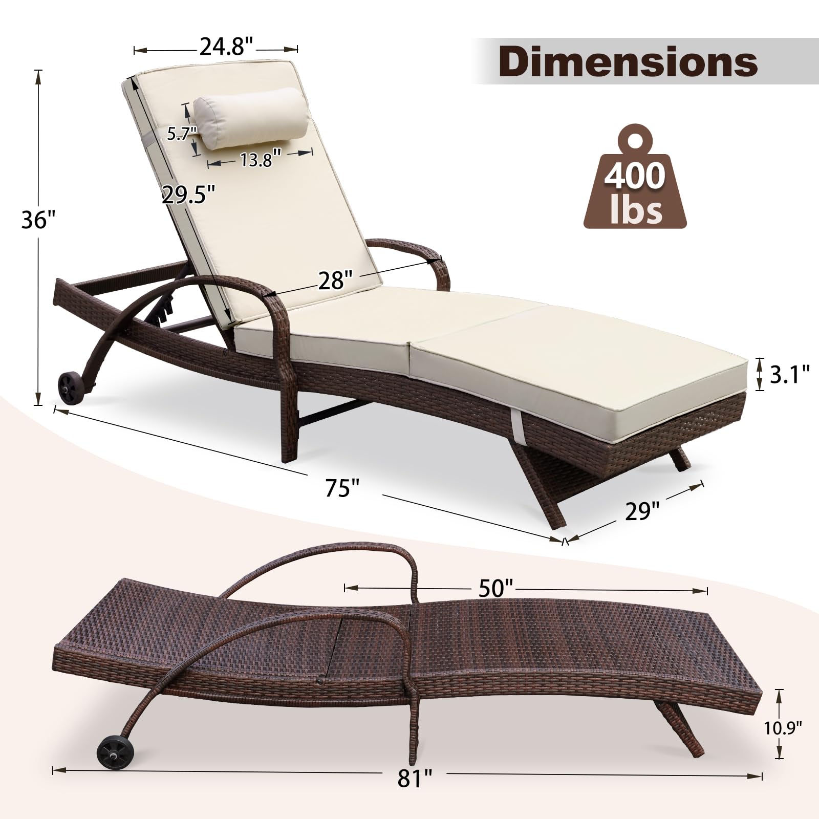 - UPGRADE COMFORTOutdoor Wicker Chaise Lounge Set comes with an armrest and anti-slip foot, and the widened thickened cushions(25 inches wide, 3.2 inches thick), add more comfortable and soft