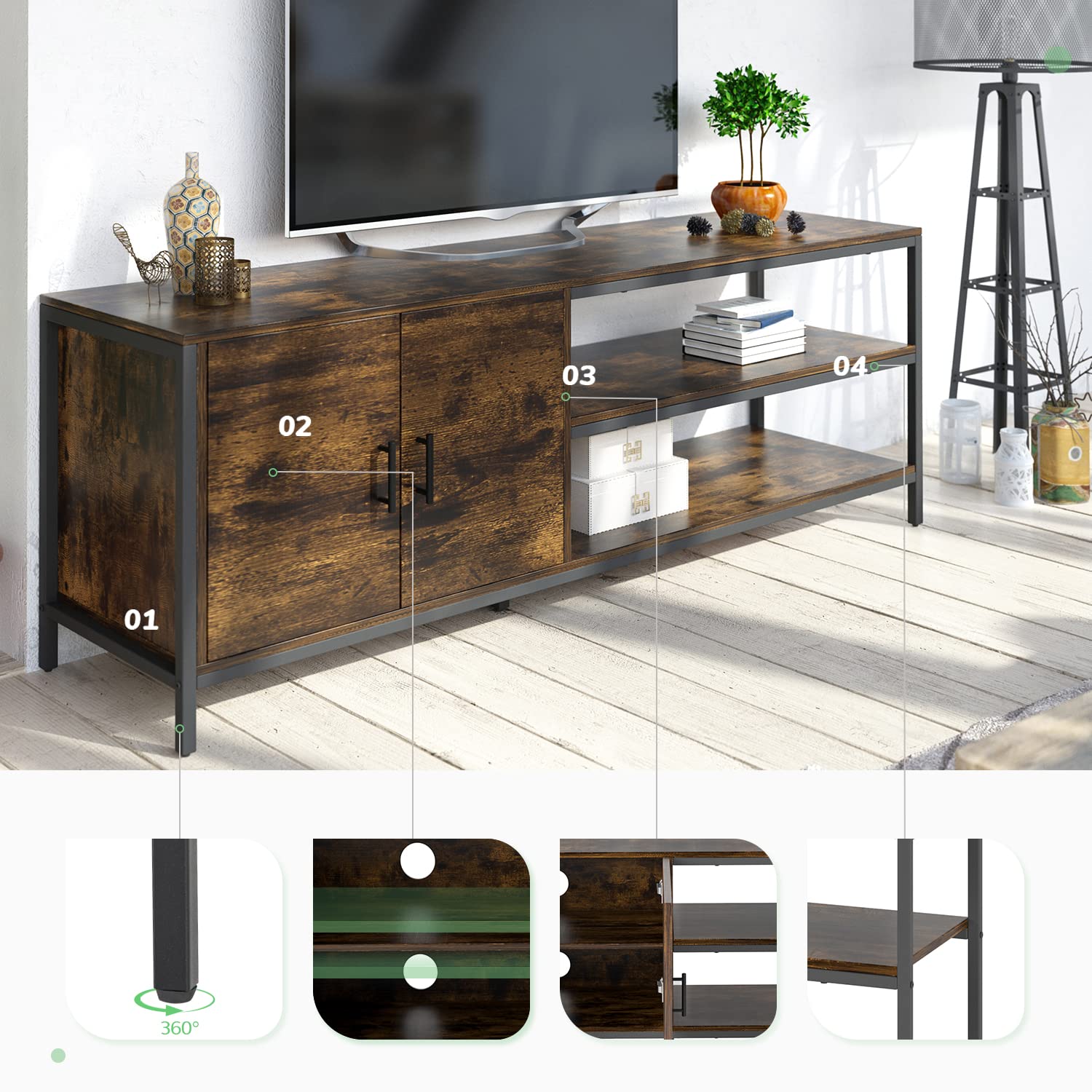 - 【DURABLE MATERIAL】Made of high-grade chipboard and edges sealed with PVC, the tall TV stand with storage is waterproof and highly resistant to wear, scratch, and corrosion.