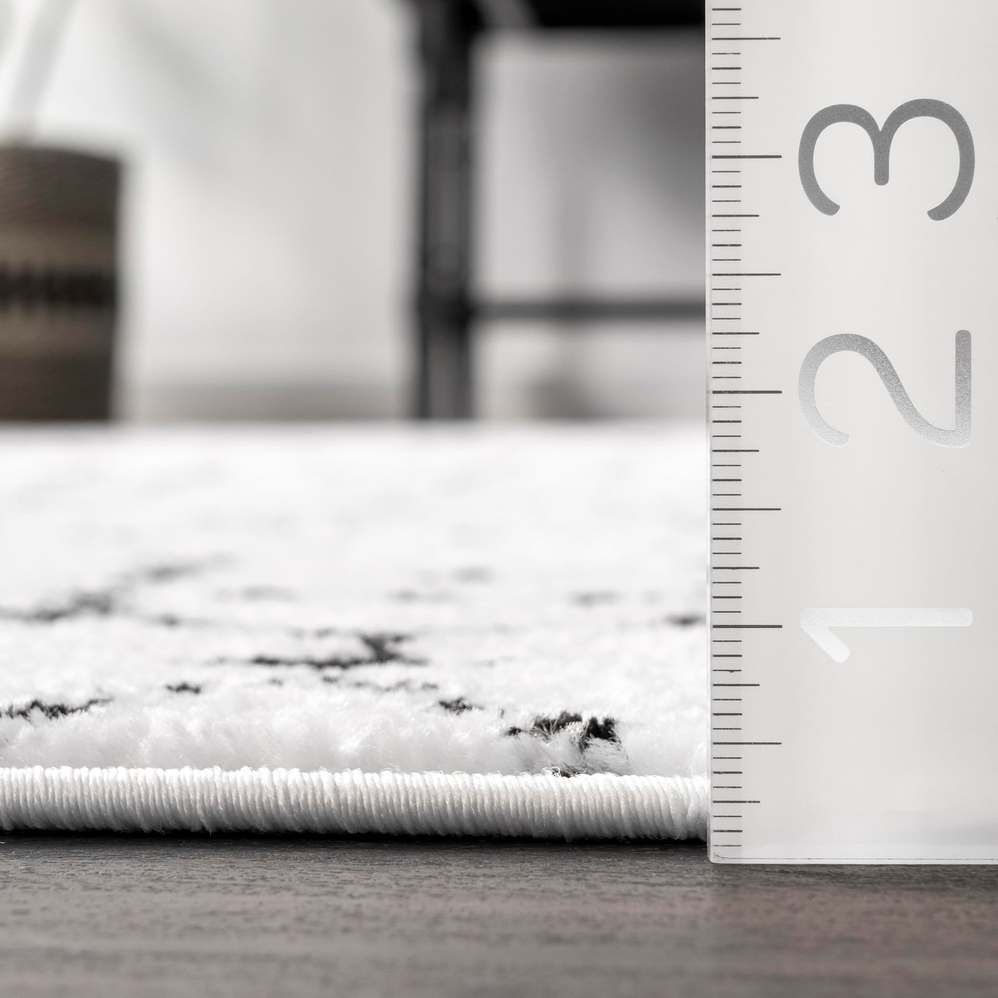 5x7 Moroccan Blythe Area Rug, White and Black, Faded Bohemian Design, Stain Resistant,