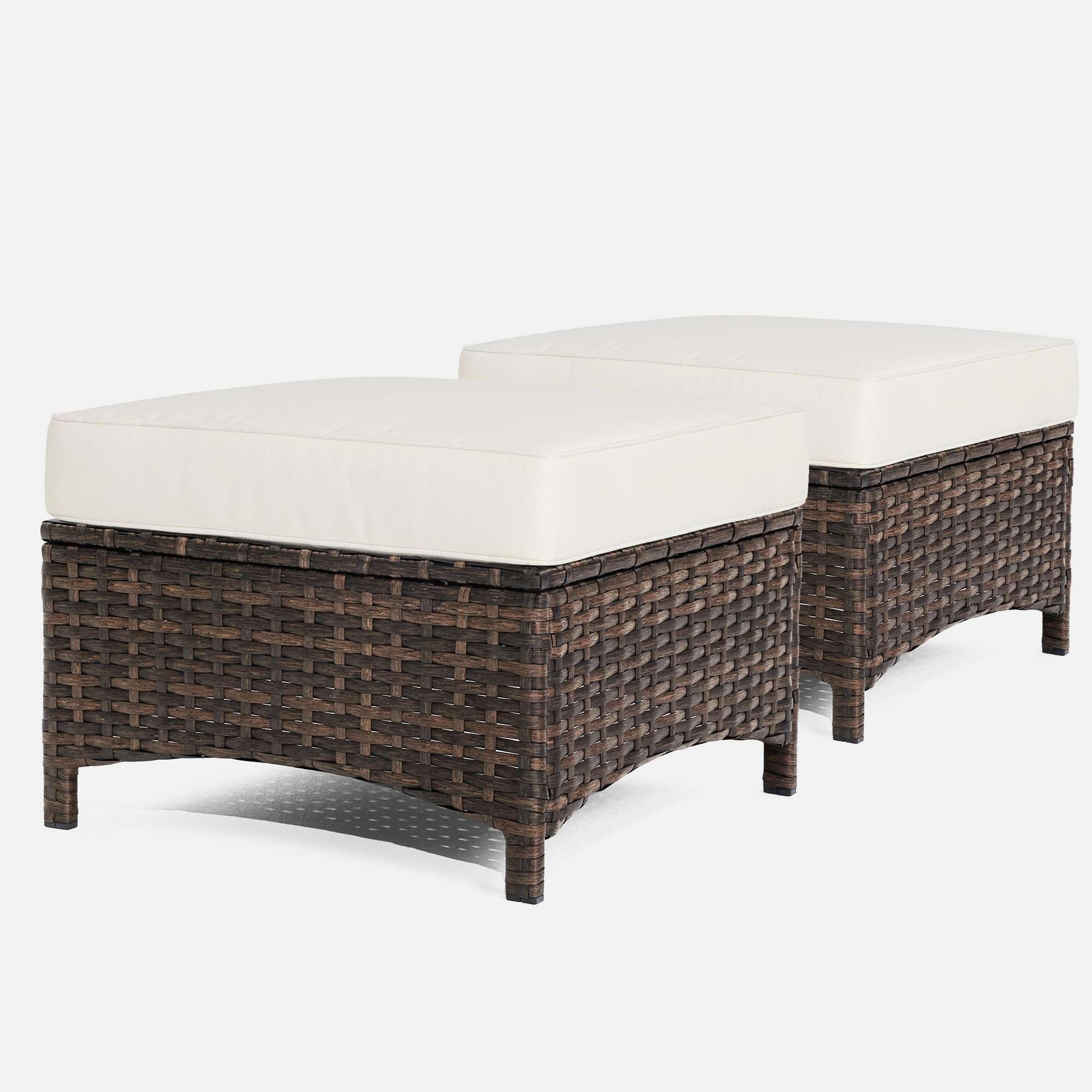 Versatile 2PCS Patio Ottomans, 3-in-1 Outdoor Wicker Footrest Seat