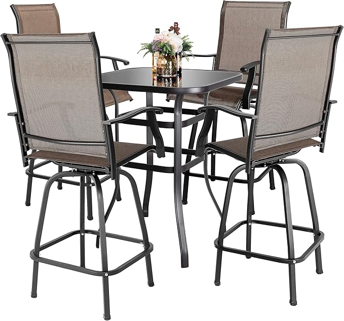 - 360-DEGREE SWIVEL: Relish the convenience of a 360-degree swivel function of the outdoor high top table and chairs, enabling effortless movement and accessibility. This feature ensures you can smoothly turn and interact with your surroundings, enhancing your overall outdoor enjoyment