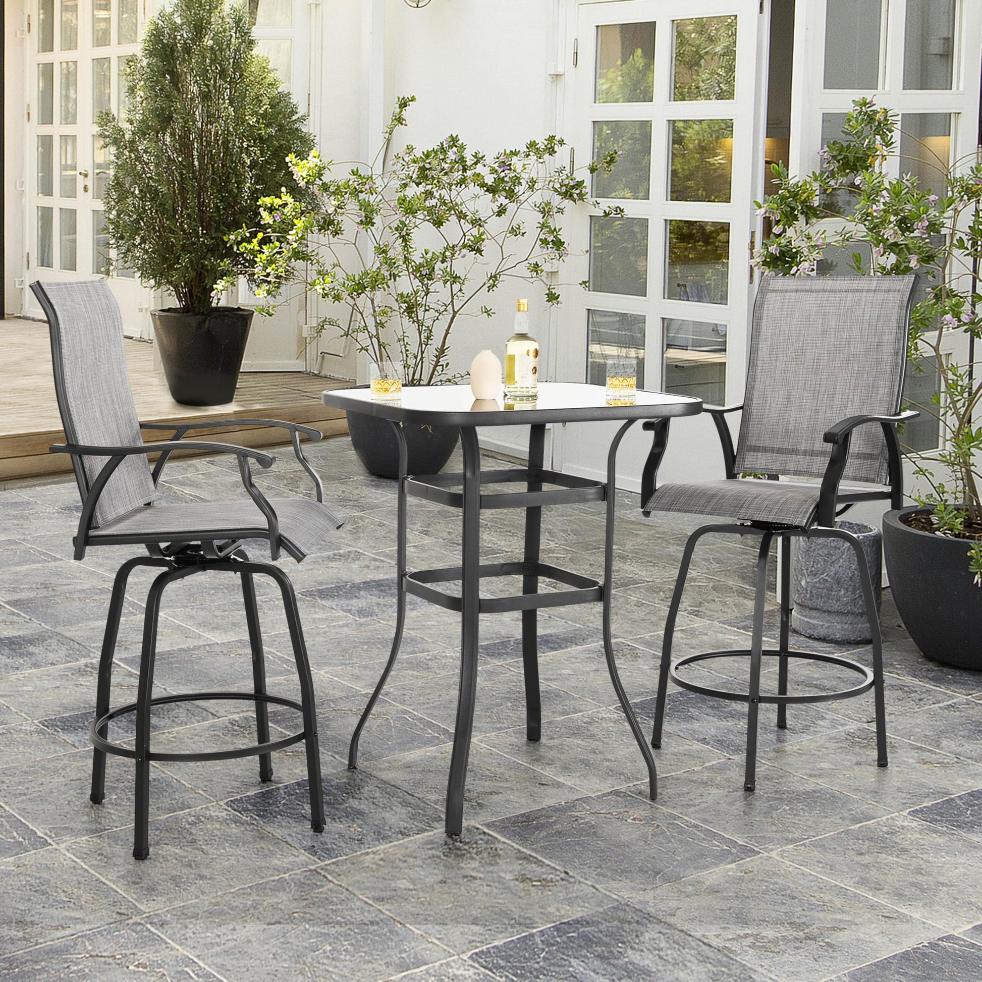 3 Piece Outdoor Patio Bar Set, Patio Bar Furniture Set, Outdoor Tempered Glass Square Bar Table