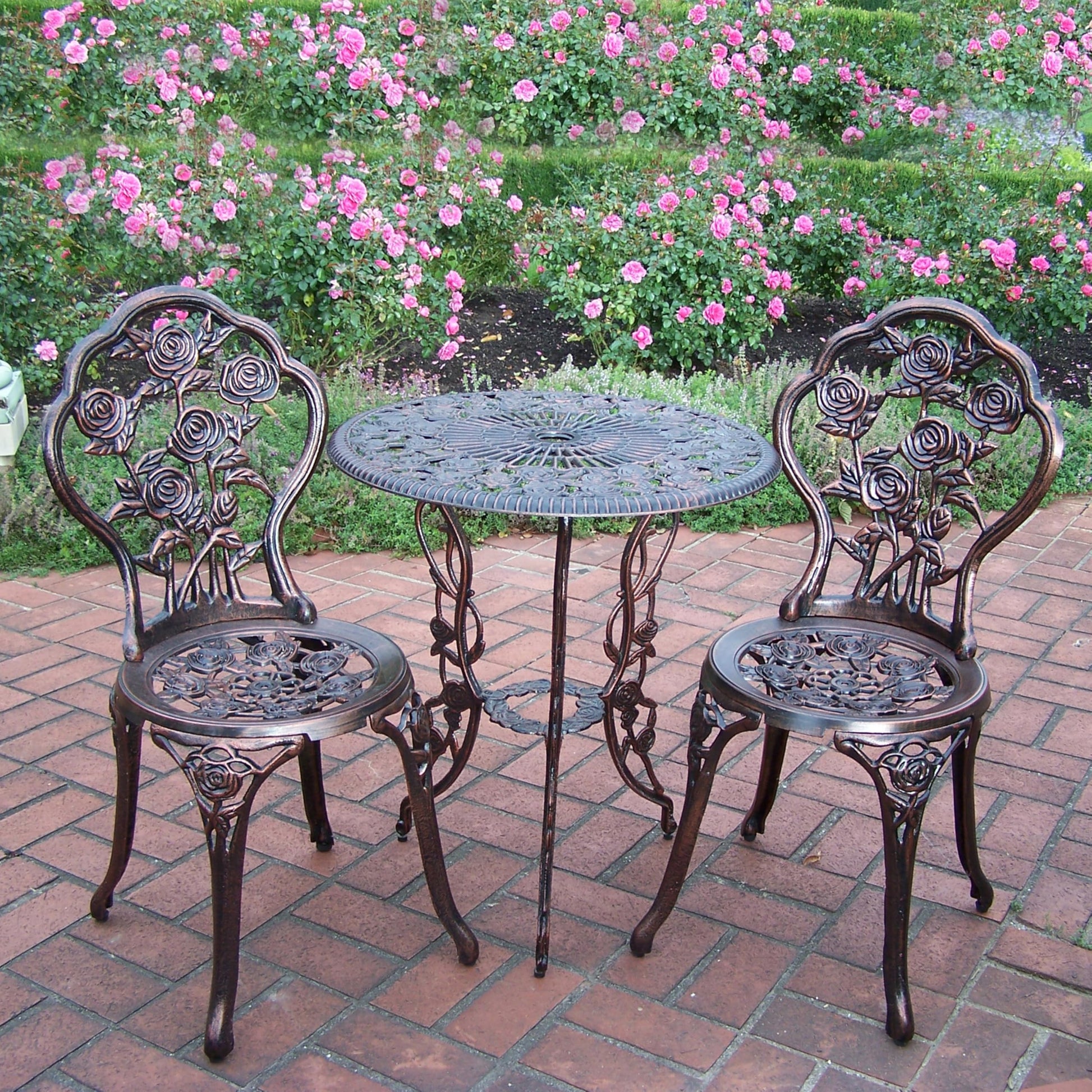 3-Piece Rose Bistro Set with 23.5-Inch Cast aluminum Top Table