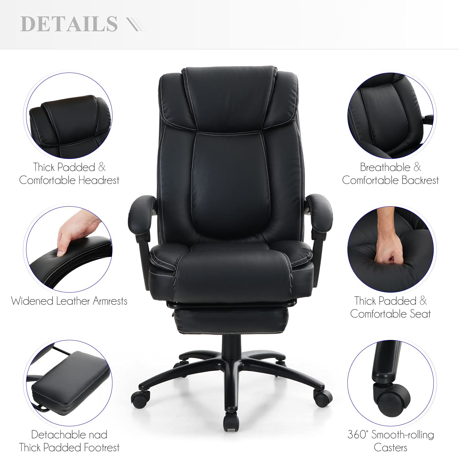 - This executive chair is designed to be made of bonded leather, provides you with 24 hours of the extreme comfort seat experience. The high back design provides maximum waist support, comfort, and convenience. High-density cushions reduce pressure on the legs and back.