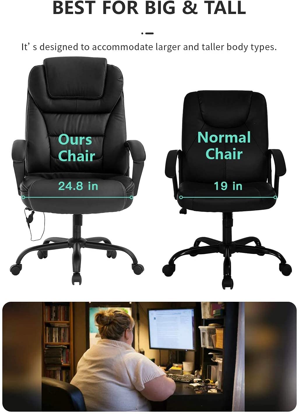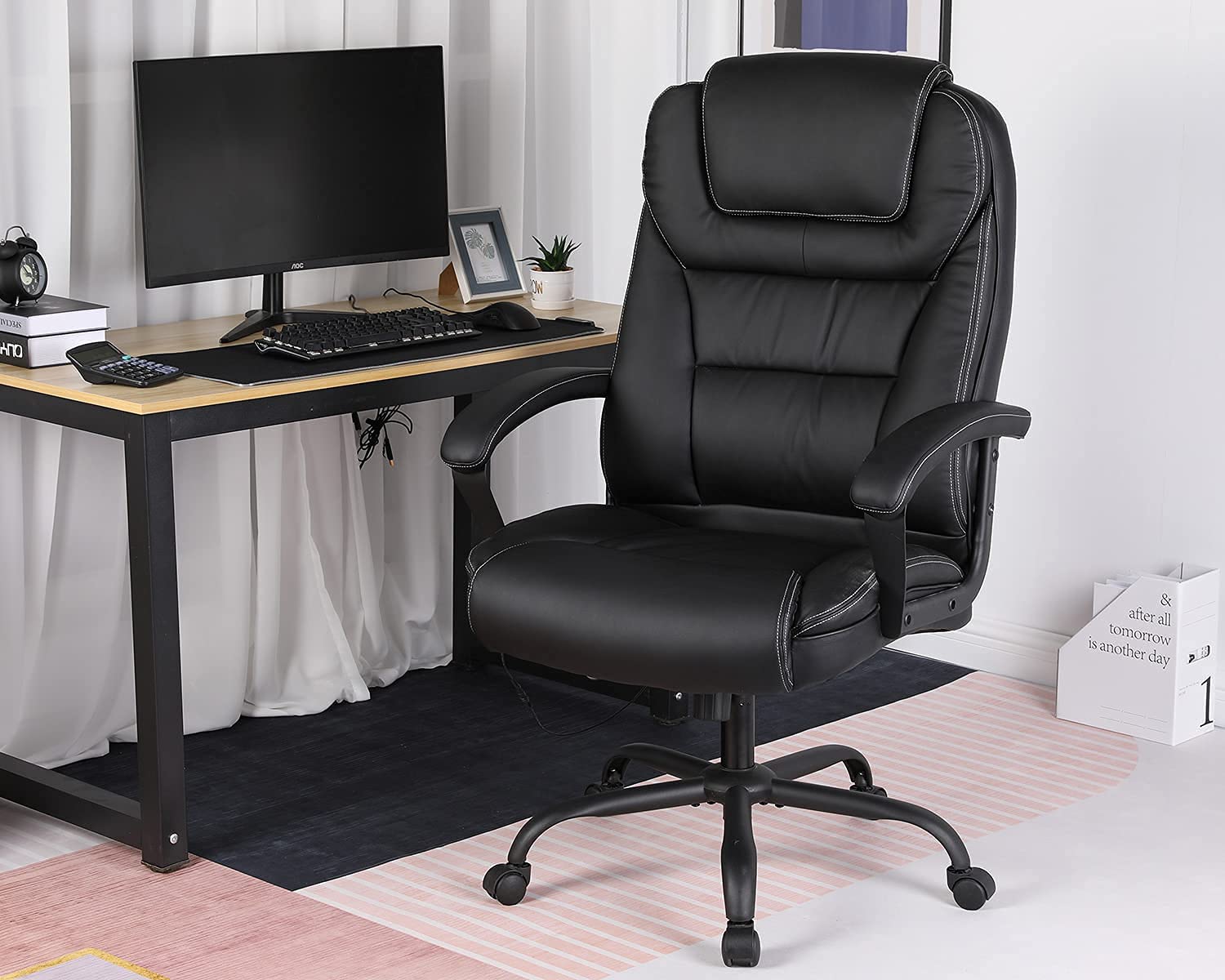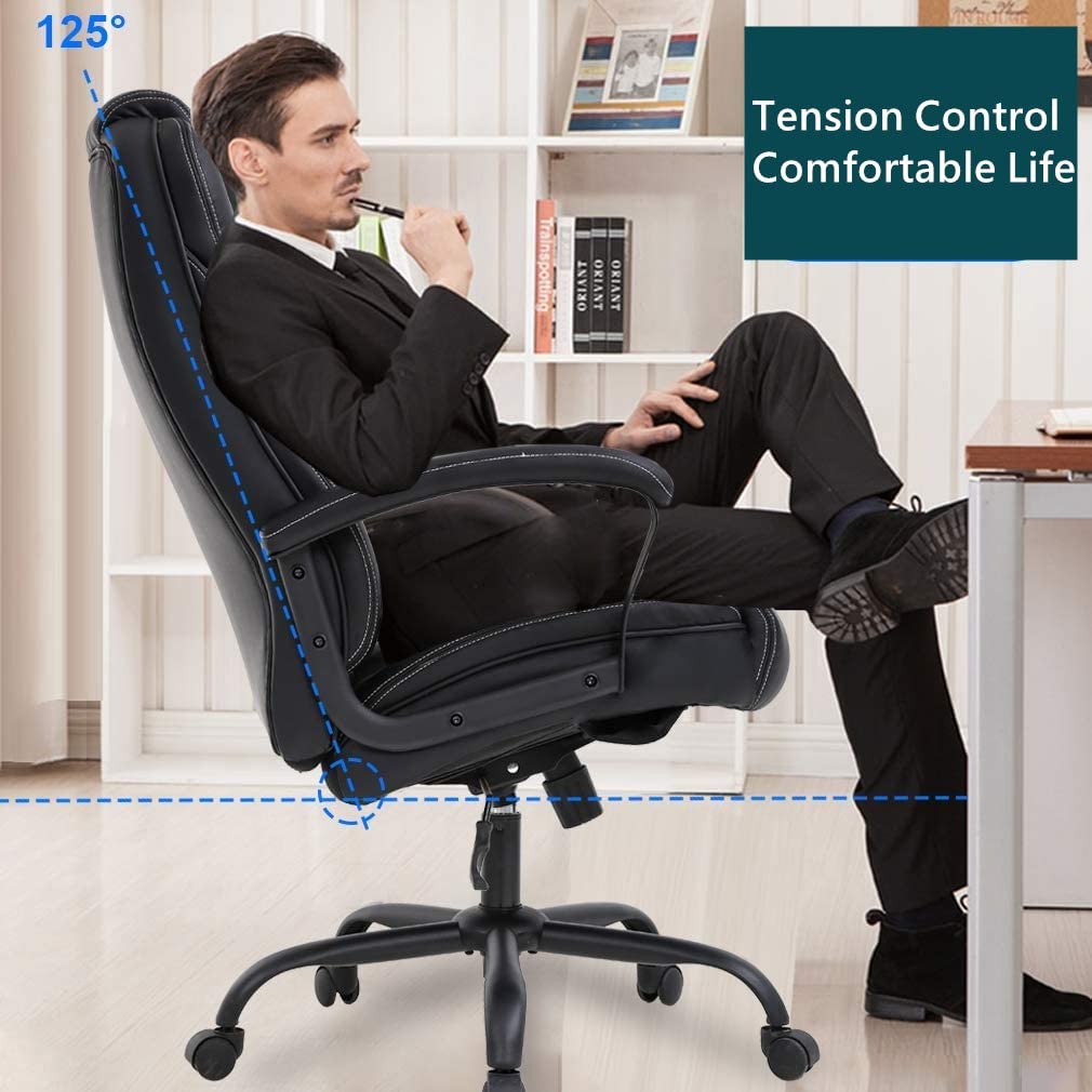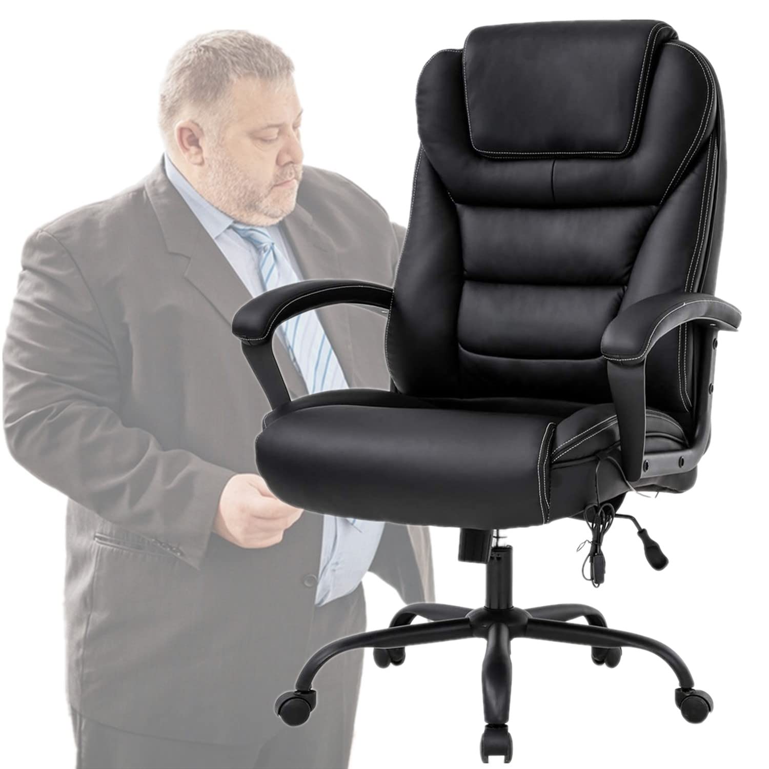 - BIG AND TALL CHAIR SPECIAL FOR HEAVY PEOPLE The ergonomic High back office chair with soft PU leather upholstery and unique appearance, and extra thickly cushioned desk chair for you maximum comfort. The fine quality of the chair treats users a new level of comfort at busy work. Desk chair does include a weight limit of 500 pounds, special designed for people with large body weight.