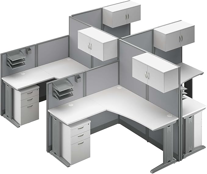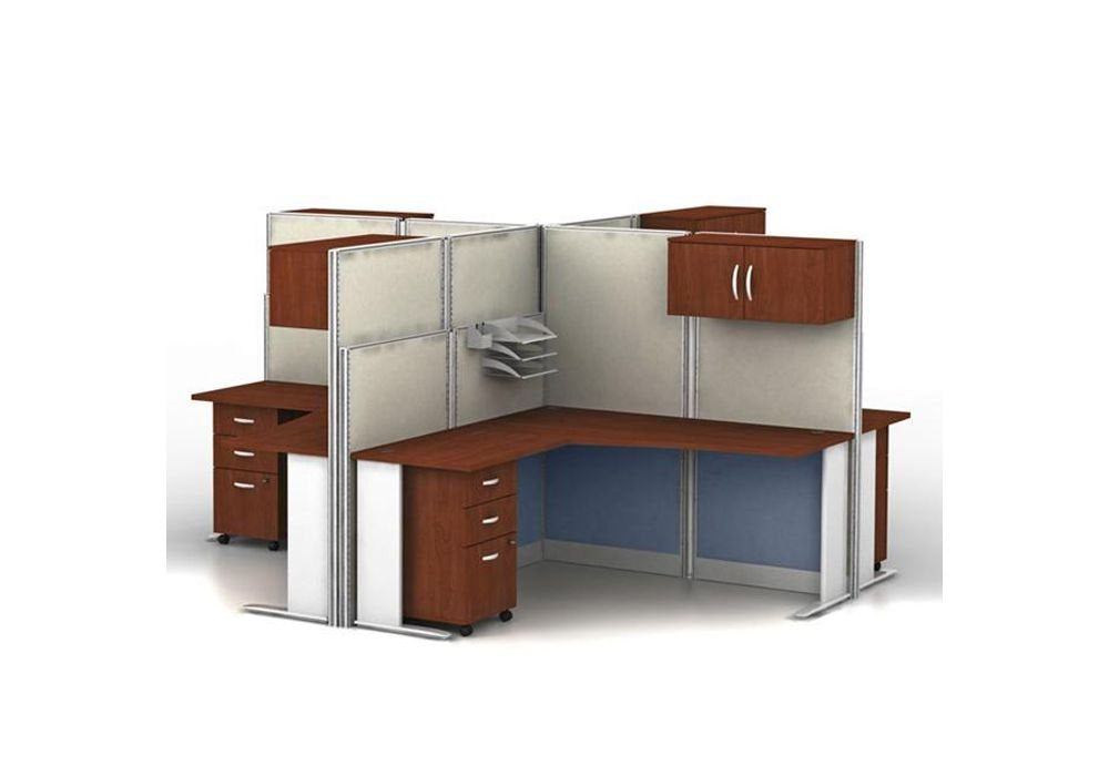 - The Office in an Hour Collection is a convenient way to turn empty space into a practical workstation. This 4-person Cubicle Desk Set is easy to order and install so you can get your workplace up and running instantly.