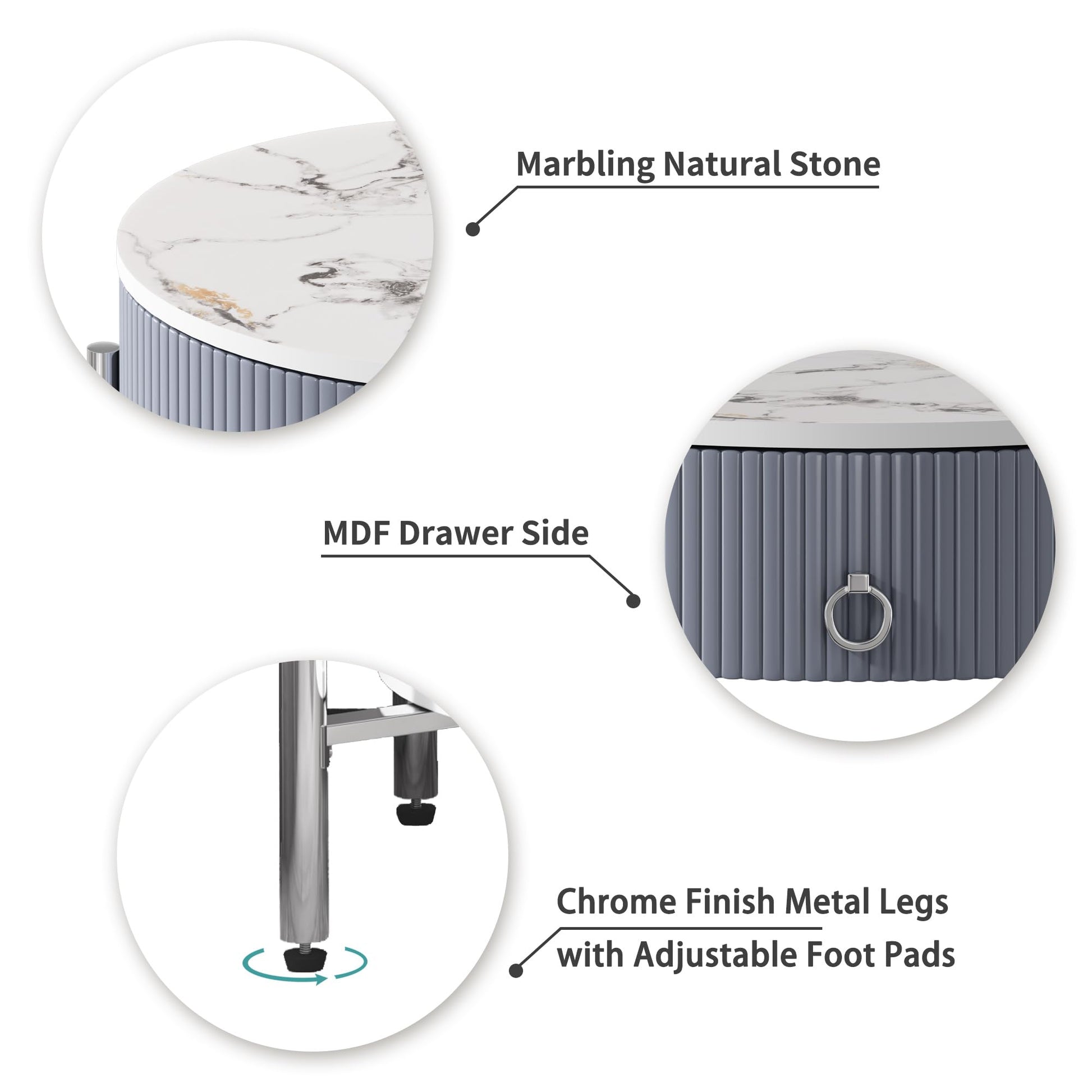 - This sturdy round nightstand with drawer is made of marbling natural stone and chrome finish metal legs, capable of holding up to 220lbs, reflecting a modern and minimalist style, suitable for a variety of home decoration styles. The table can meet your various storage needs and can be placed in your living room or bedroom as a side table or nightstand to display your items