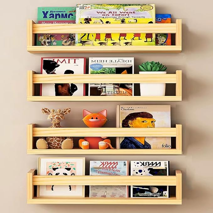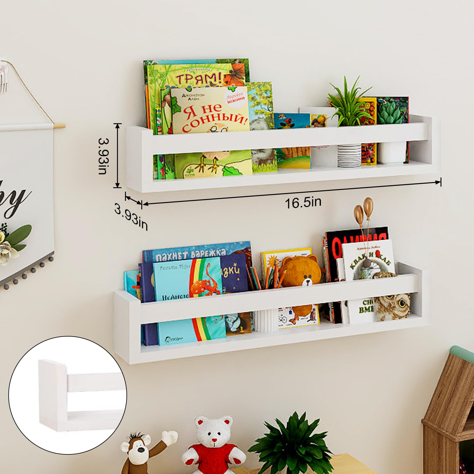 - Space-SavingBy mounting these shelves on the wall, they help store your child's belongings, freeing up valuable floor space in your nursery or children's room.
