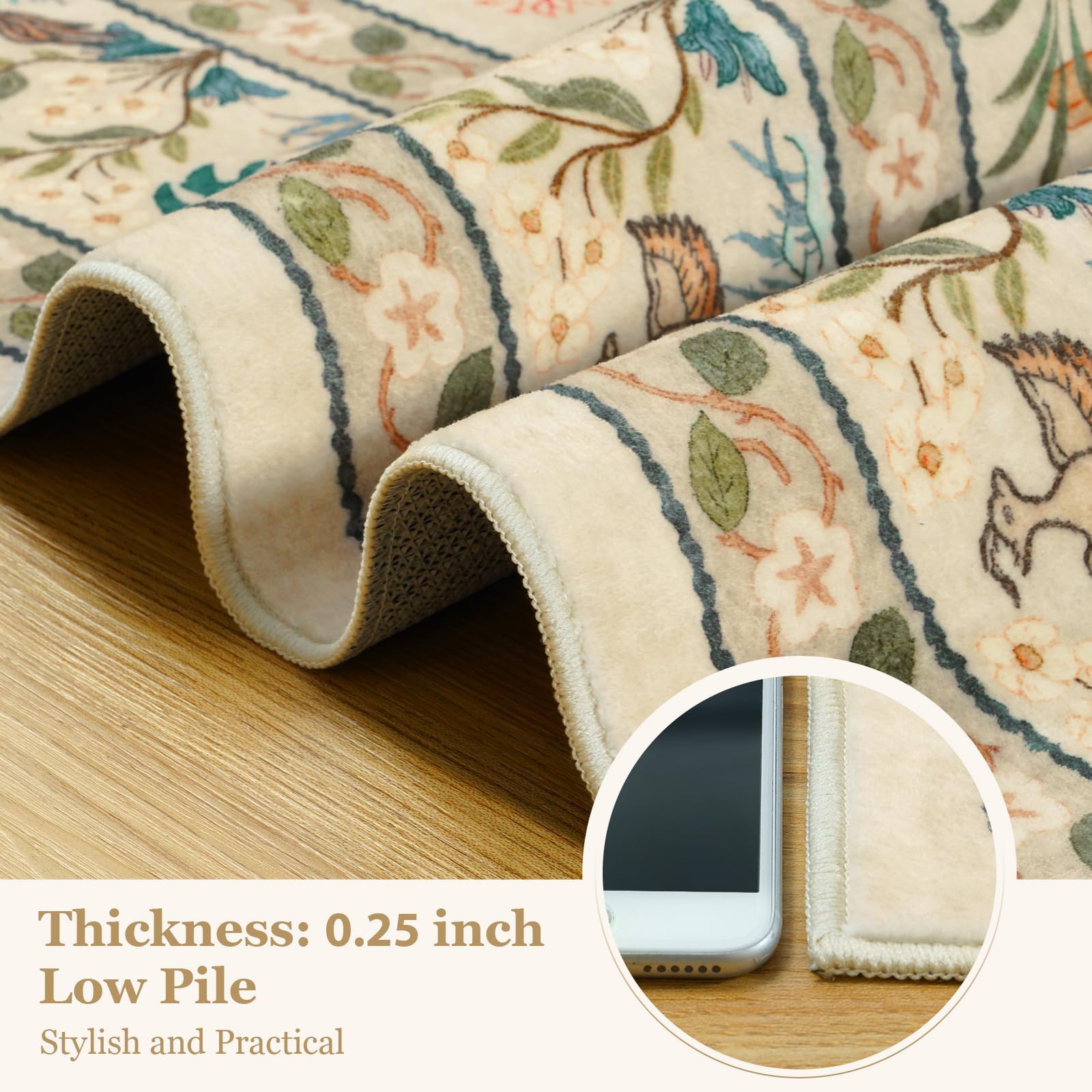 OJIA 8x10 Area Rugs for Living Room Bedroom Large Washable Rugs, Thin Boho Beige Nursery Rug Non-Shedding Kids Playroom Rug Floral Stain Resistant Large Carpet Accent Rugs for Dining Farmhouse