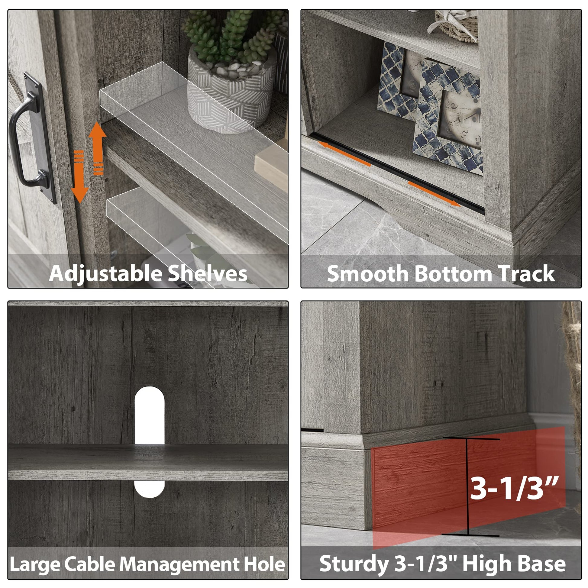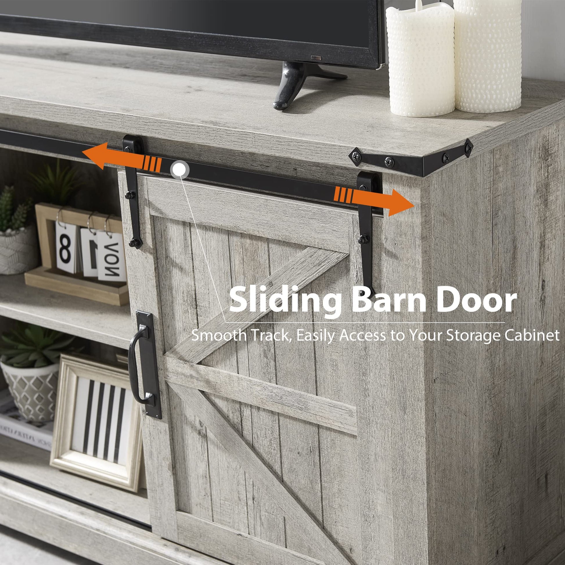 - MODERN CLASSIC FARMHOUSE DESIGN: Our tv cabinet is designed with natural 3D light oak wood grain and barn-style doors, combining a modern and traditional farmhouse style and adding a touch of farmhouse charm to your entertainment space, suitable for different styles of furniture in your living room and bedroom