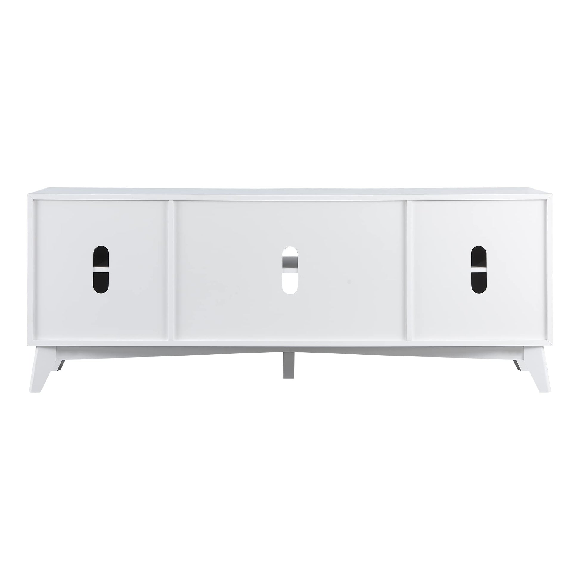 - Roomy & Flexible Storage Space: Each Cabinet has removable and adjustable shelves, so you can customize your storage as needed, providing enough storage for media, electronics, books, and other items. The 66” wide tabletop is spacious enough to accommodate TVs up to 75''. Three large cutouts on the back for easy wire feeding and ventilation of audio-video equipment. In addition, the doors close silently and softly, thanks to the integrated soft-closing function.
