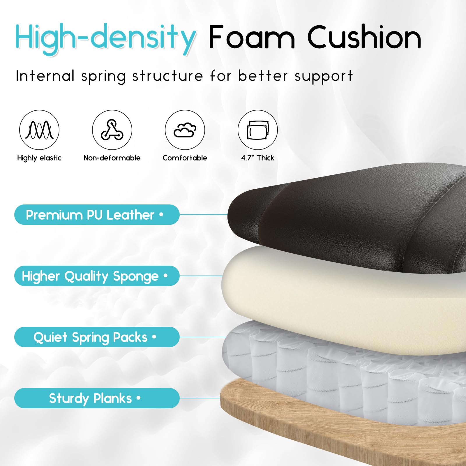 - First-Class Seating Experience Experience ultimate comfort with our high-density native sponge seat cushion and built-in spring pockets that provide the same elasticity as a sofa or mattress. The ergonomically designed super-wide backrest and thickened headrest offer excellent support for your body, neck, and spine during long work, study, or gaming sessions.