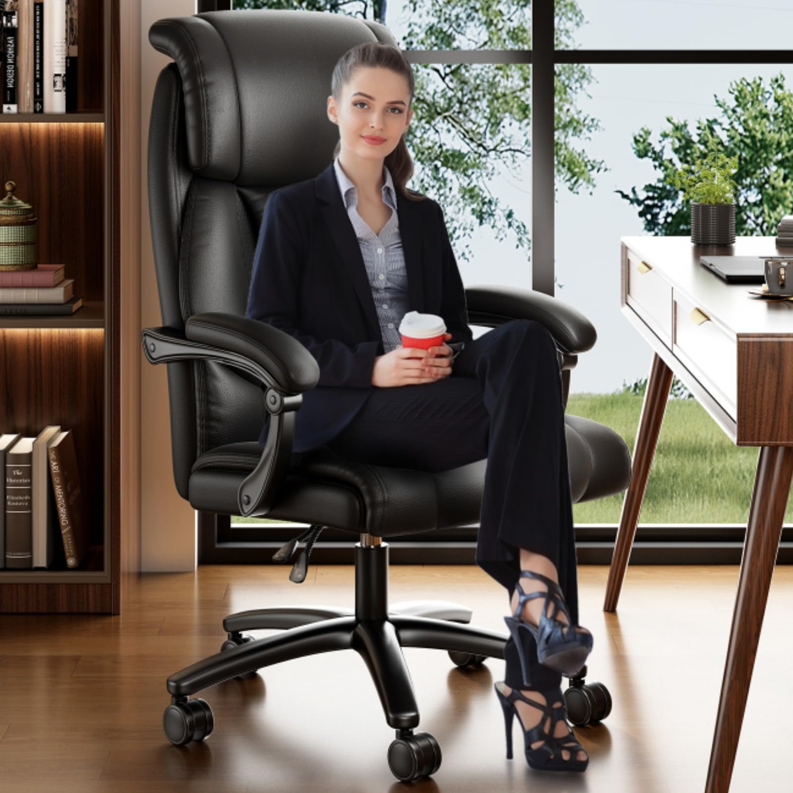 - Certified Comfor Whether you need an executive desk chair, boss chair, computer chair, office desk chair, reclining desk chair, or gaming seat, our product meets your requirements. Each part is carefully selected and finished to perfection, with PU leather material providing a superior touch. The leather office chair is equipped with smooth rolling wheels, the gas cylinder certified by SGS, and a heavy-duty metal base, all passing over 120,000 quality and safety tests, ensuring reliability and sturdiness with BIFIMA certification.