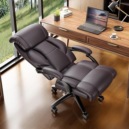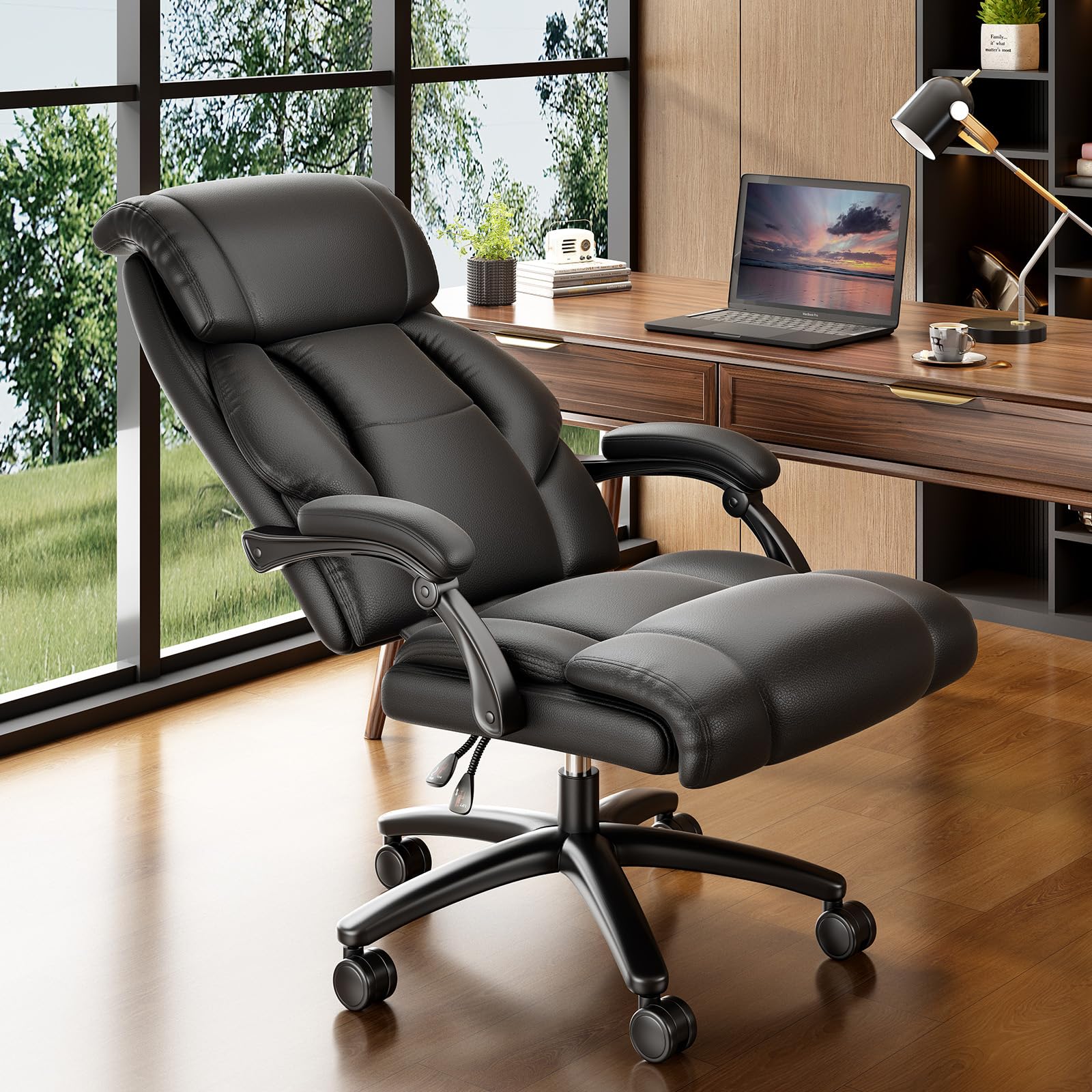 Reclining Office Chair, High Back Executive Office Chair 400lbs, Leather Home Office Desk