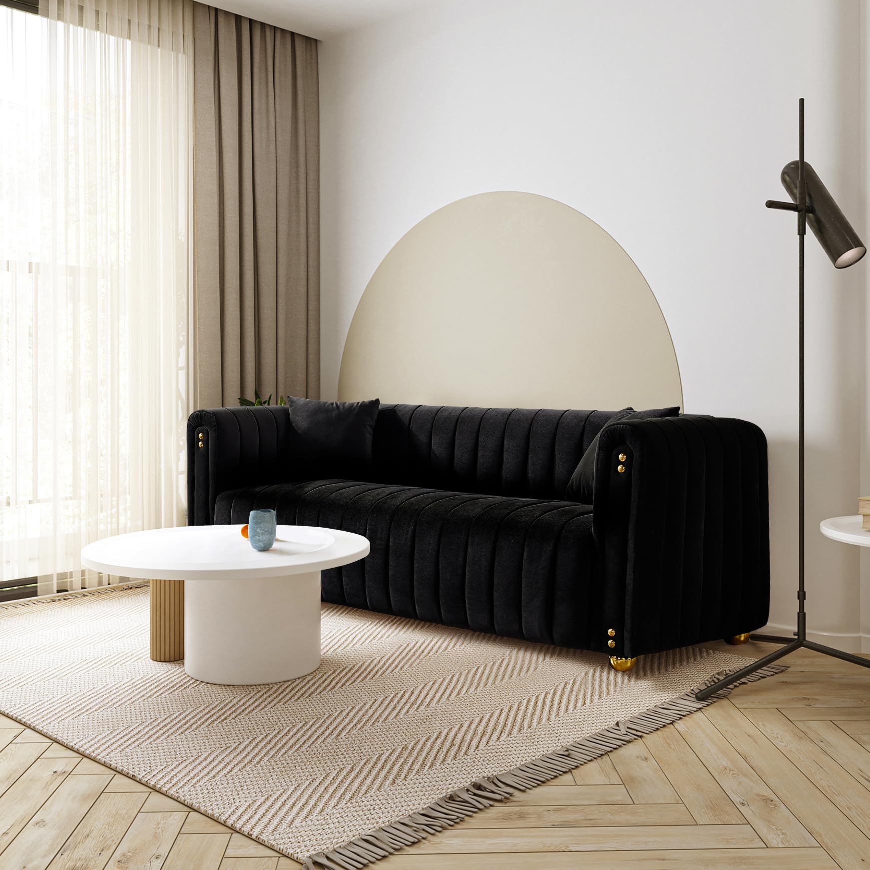 - The velvet sofa offers ample seating space for you and your guests to relax and unwind. Whether you're enjoying a movie night or hosting a gathering, the sofa's spacious design accommodates multiple people comfortably, providing an inviting and cozy atmosphere.