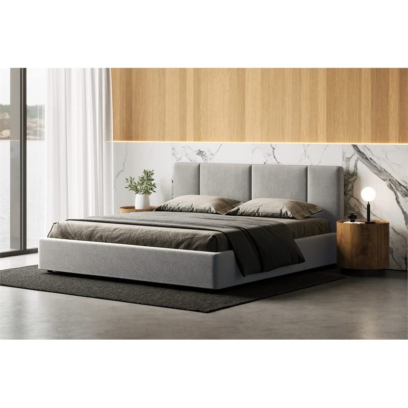 Venice Upholstered Platform Bed | Box Spring Not Required | (Grey Boucle, King Bed