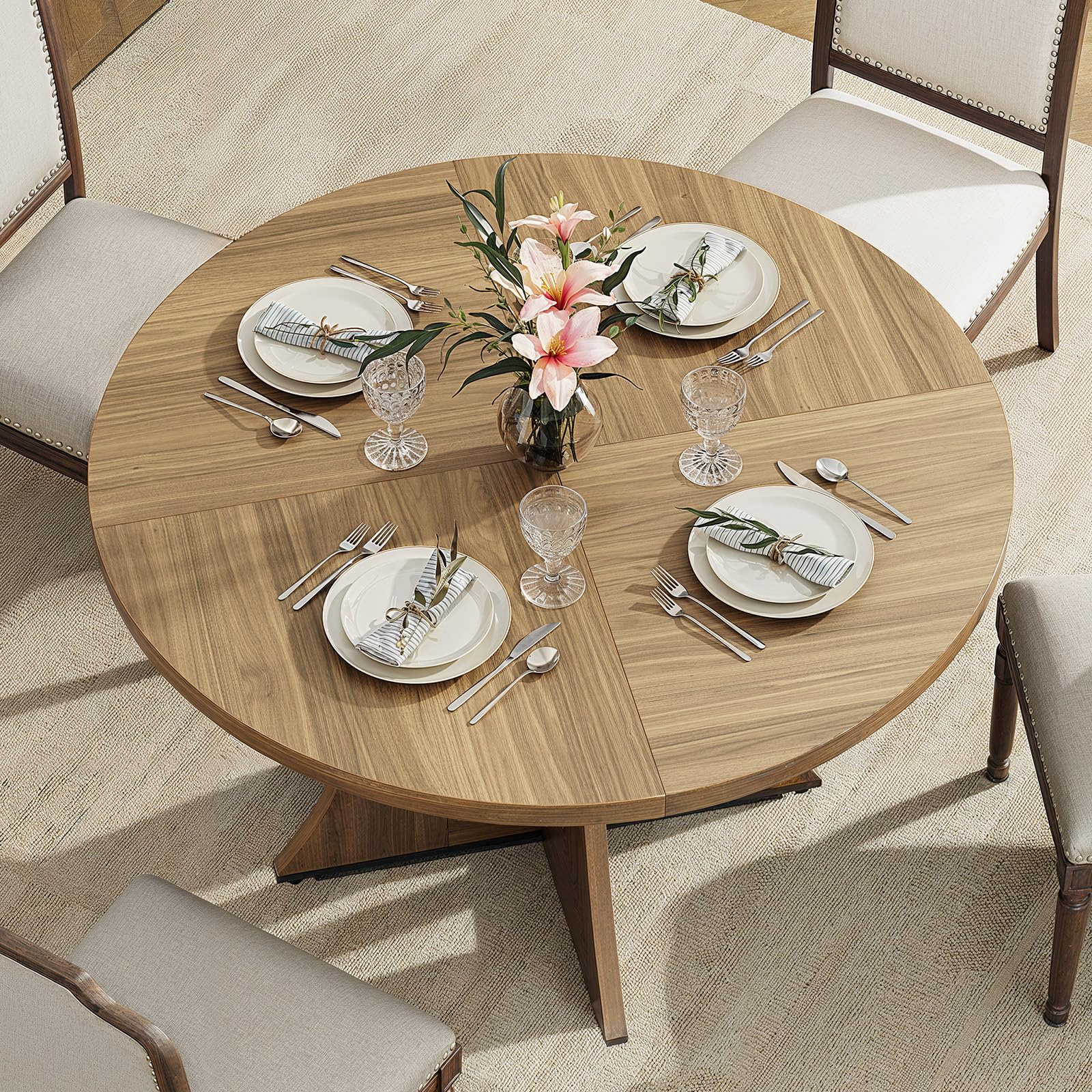 47.2 inch Round Dining Table for 4-6 People, Wood Kitchen Table for Dining Room