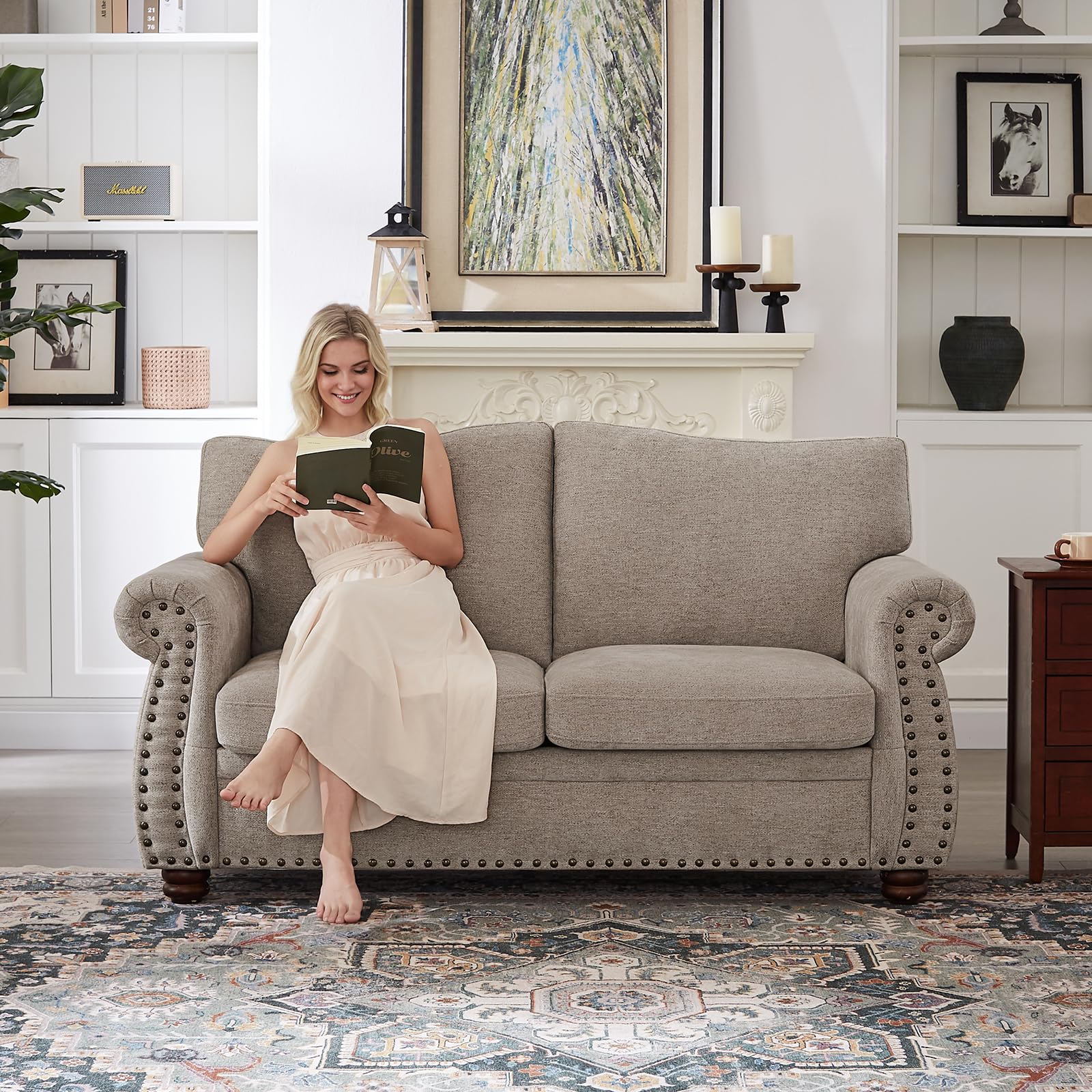 - Nailhead Trim & Rolled Arms Design: This living room sofa features sophisticated nailhead trim finish and traditional rolled arms, creating a vintage atmosphere and suitable for all styles of decoration