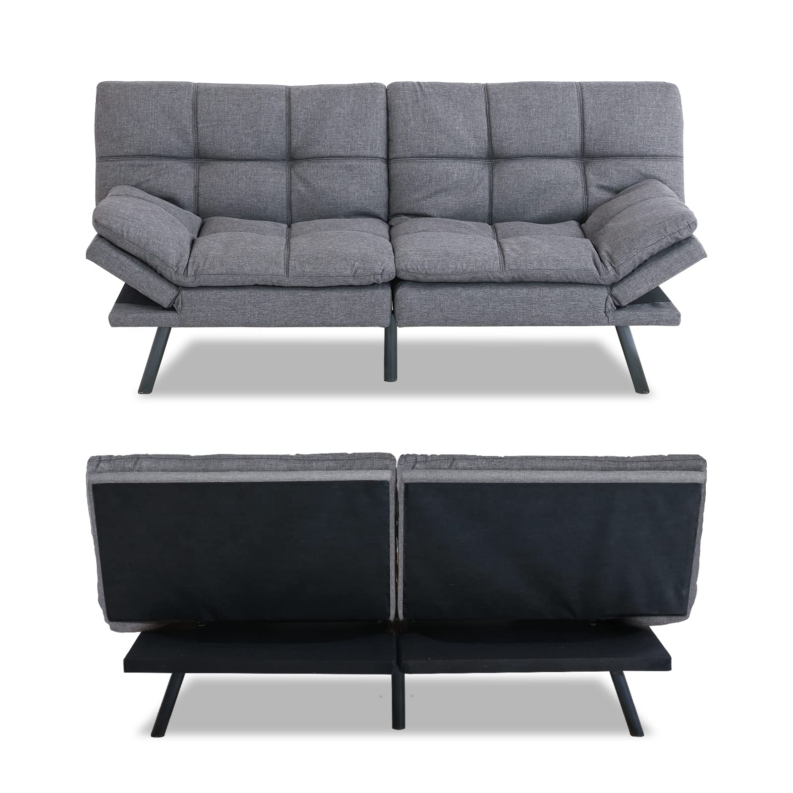 - Modern Design - Grey fabric suitable for space decor blends with modern wheel. Modern adjustable futon sofa with both stylish look and convenient function. Add character to your room, living room, guest room, dorm room, apartment, office. Ideal for small spaces.