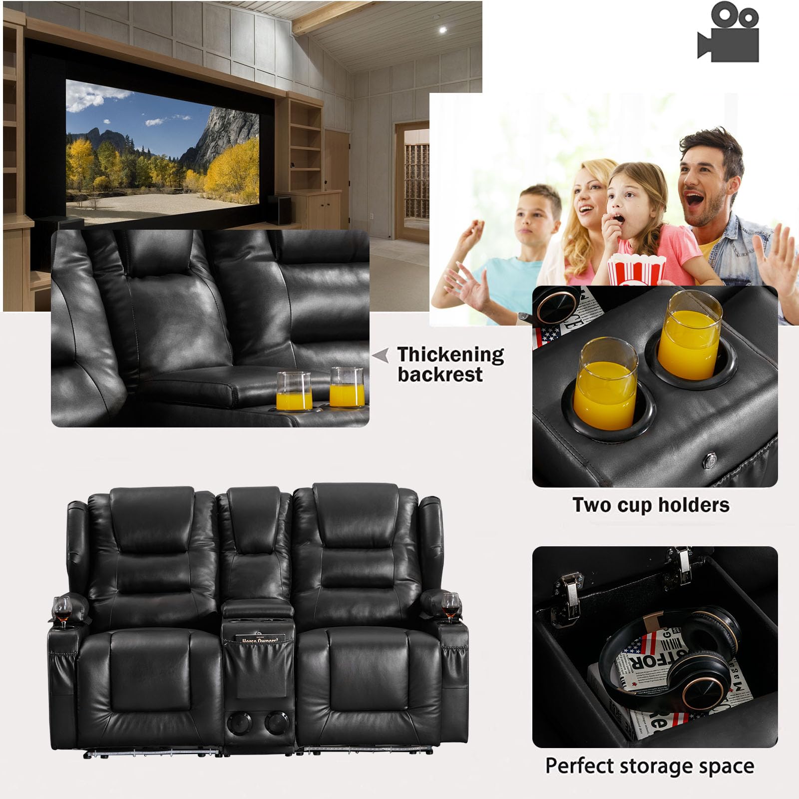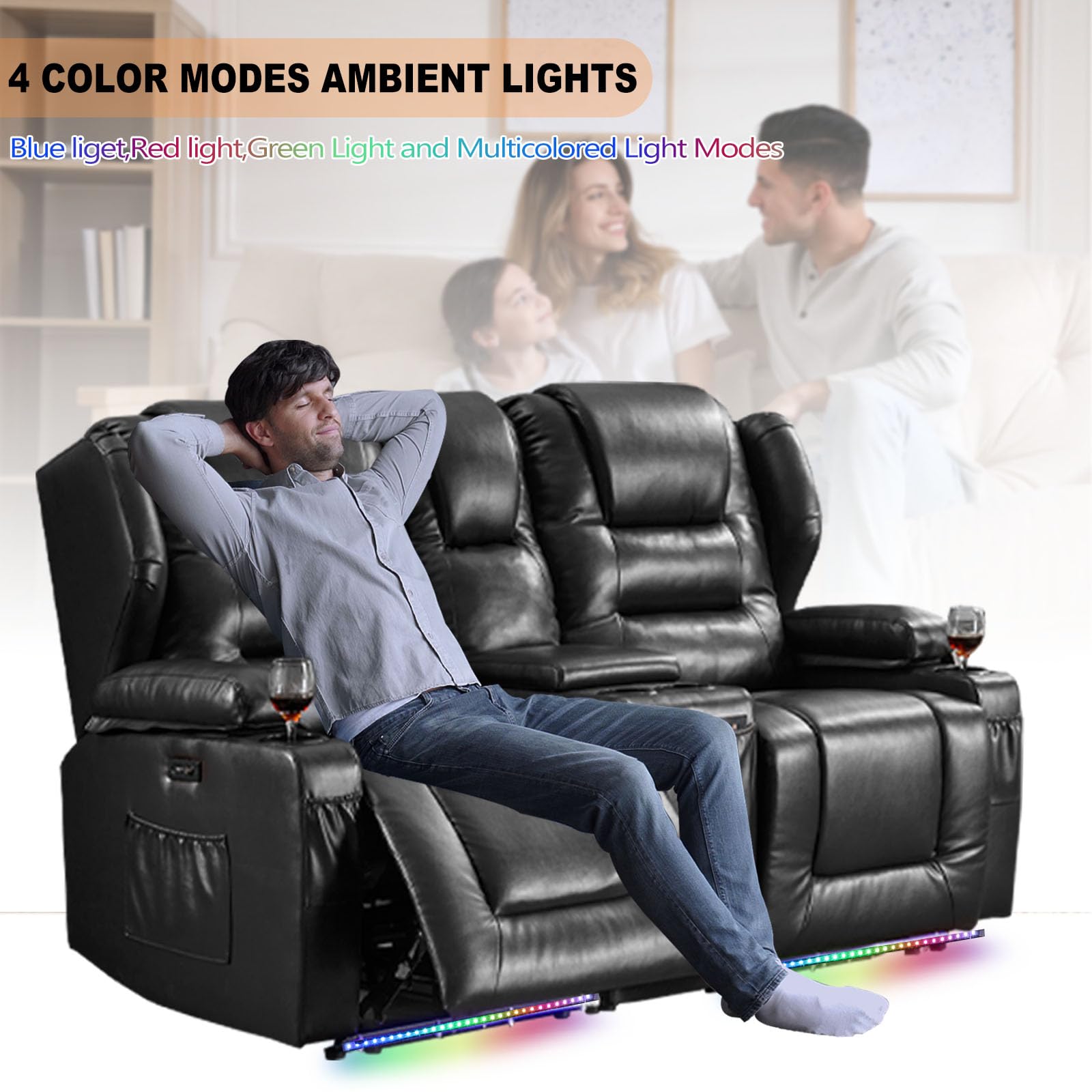 - ADDITIONAL FEATURES RV Recliner specially designed a storage space in the middle of the two seats, easy to store the items needed for daily use without leaving the chair to get. What more? This RV Recliner has totally 4 cup holders in both side of the seatings for holding drinks. LED lighting also increase the fun of life, allowing you to immerse yourself in a relaxed atmosphere in a moment.