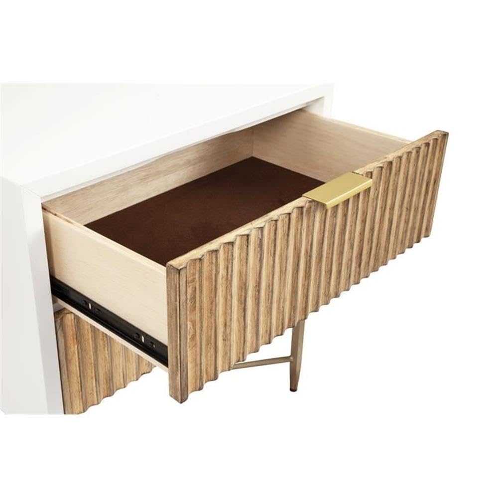 - Features textured solid wood drawer faces that create a beautiful effect with patterns of shadows and light