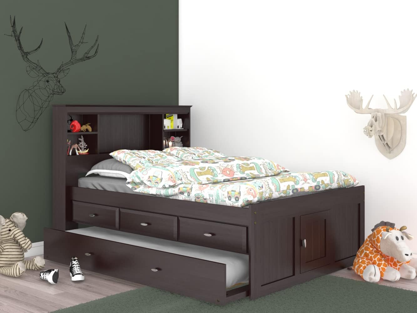 Model 82921K3-22 Full Size Bookcase Bed with Three Drawers and Twin Sized Trundle