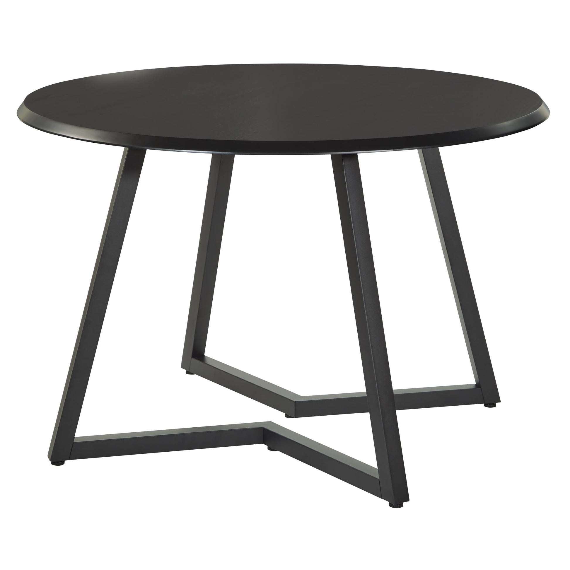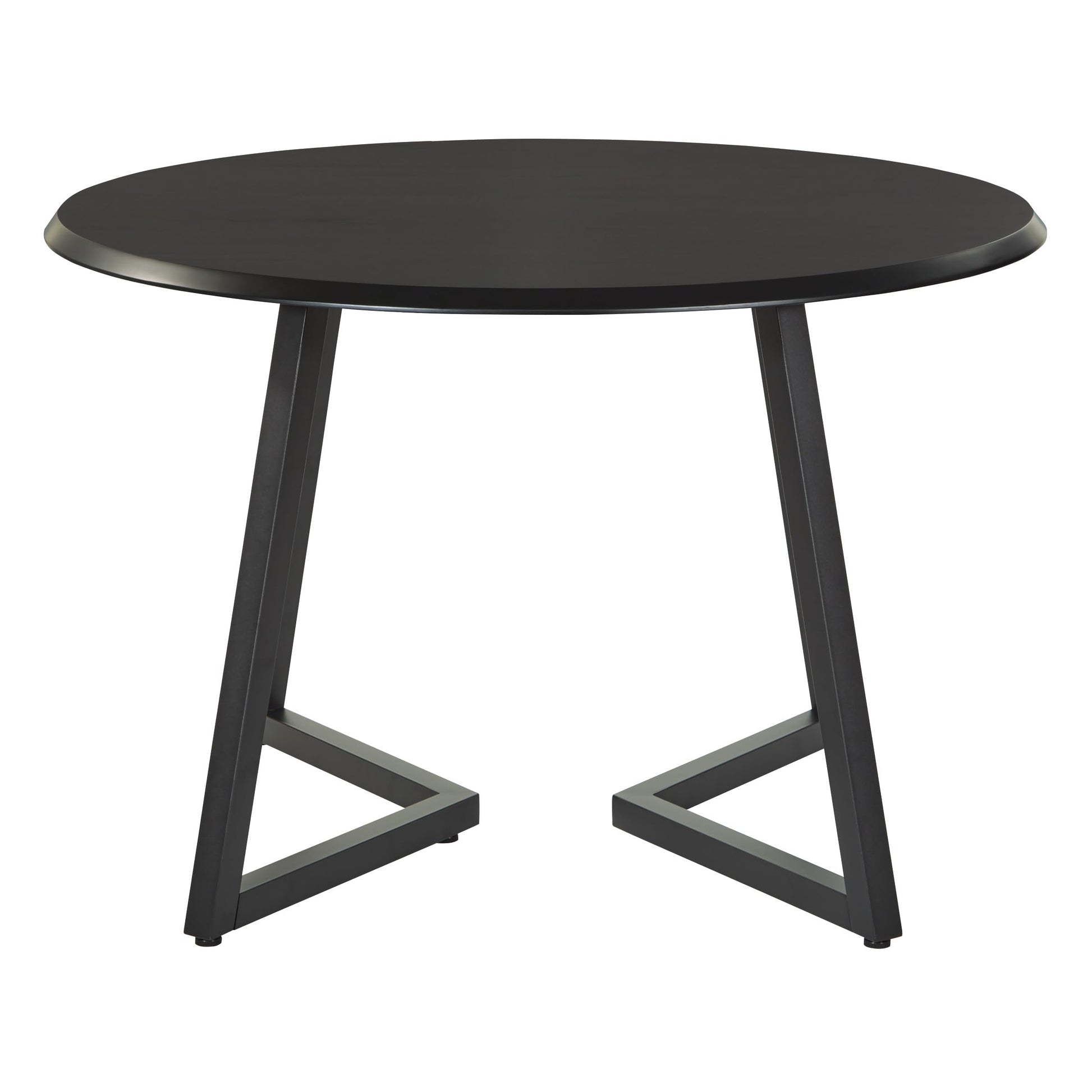 - Create a fresh modern dining room, kitchen or breakfast nook with our Mid-Century Modern round dining table with metal cross-frame base in a matte black finish.