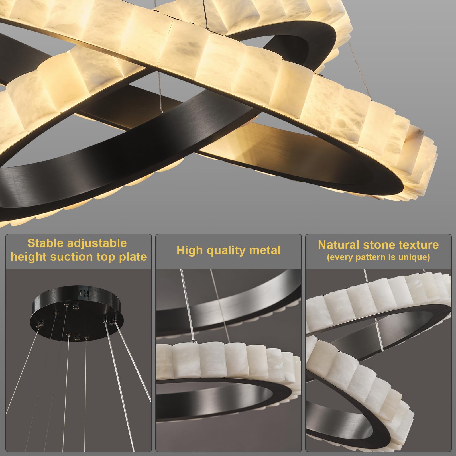 - Our modern chandeliers for dining room are made from spanish alabaster, a natural stone solidified over millions of years by volcanic lava, and each piece of alabaster is carefully selected and hand-polished to give a delicate and attractive appearance while enhancing the natural beauty of the stone.