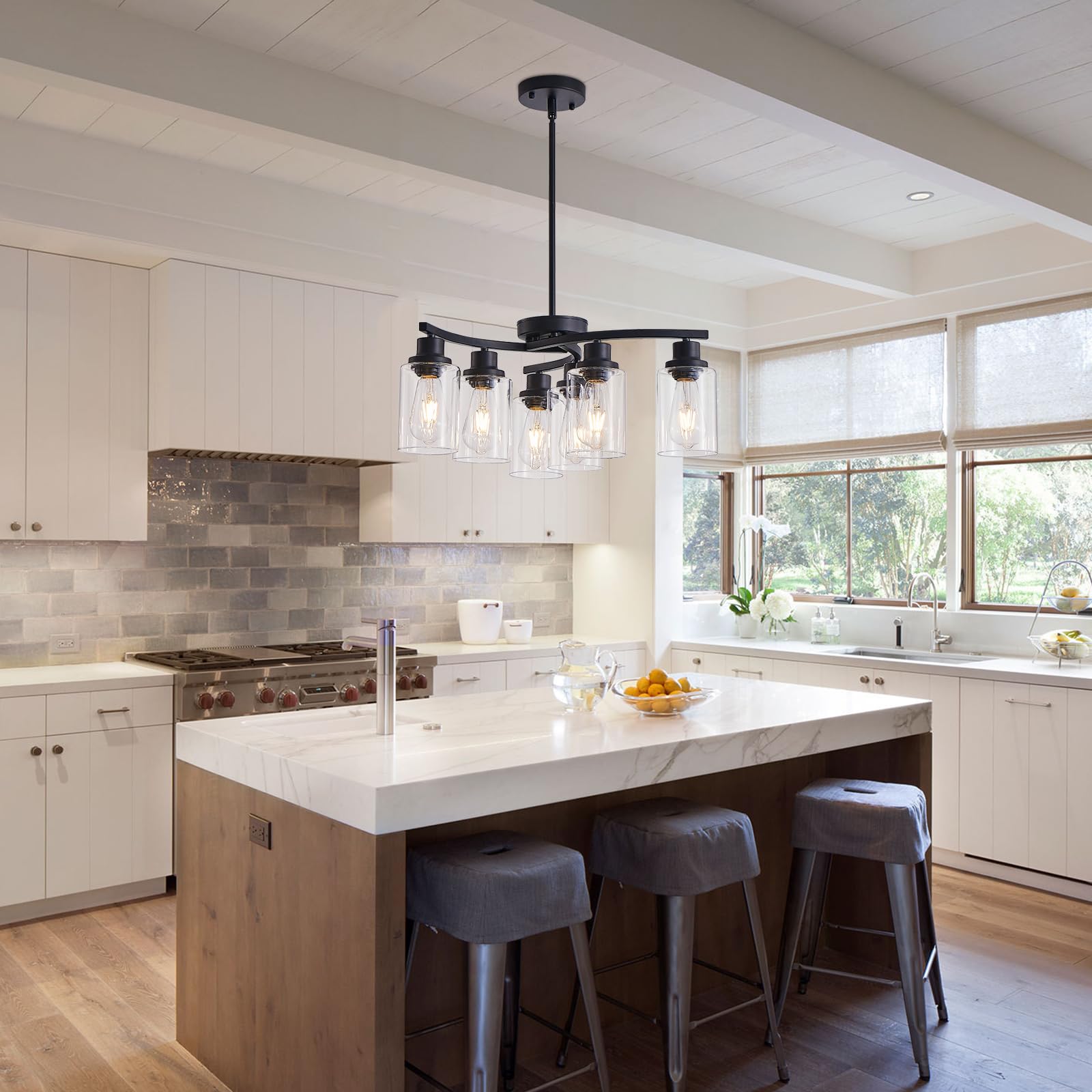 OTeedo 6-Light Modern Farmhouse Black Chandeliers for Dining Room,Kitchen Black Chandeliers Over Table,Adjustable Height Hanging Whirlwind Pendant Lights,Clear Glass Shade Ceiling Light Fixture