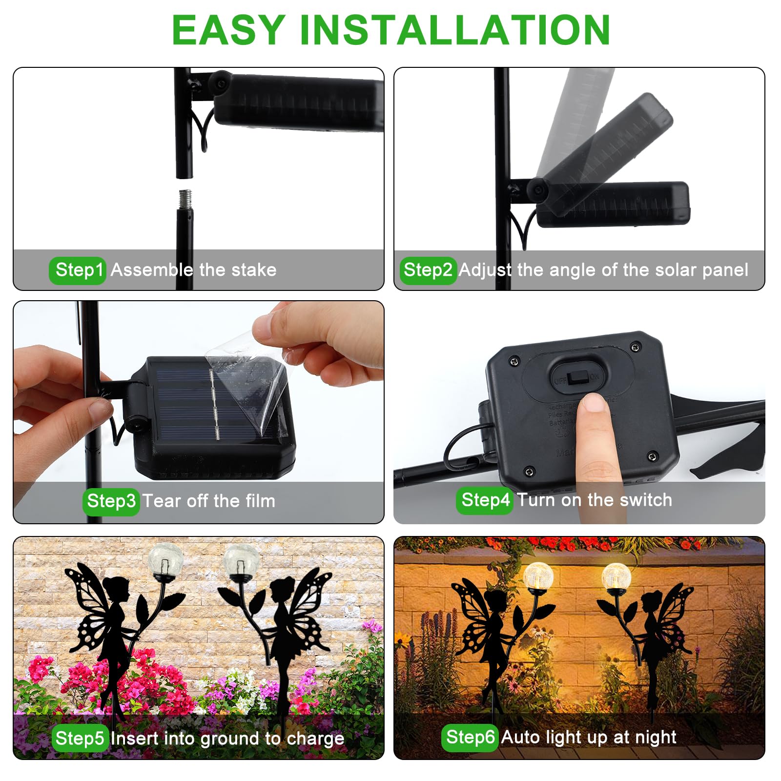 - Easy to Use - Installing the solar garden lights outdoor is effortless. Just attach the ground garden stakes to the fairy statues and insert them in a location that receives ample sunlight during the day, then let the sun do the rest. No wiring or additional tools are required, making it convenient for anyone to set up and enjoy the beauty of the fairy garden accessories.
