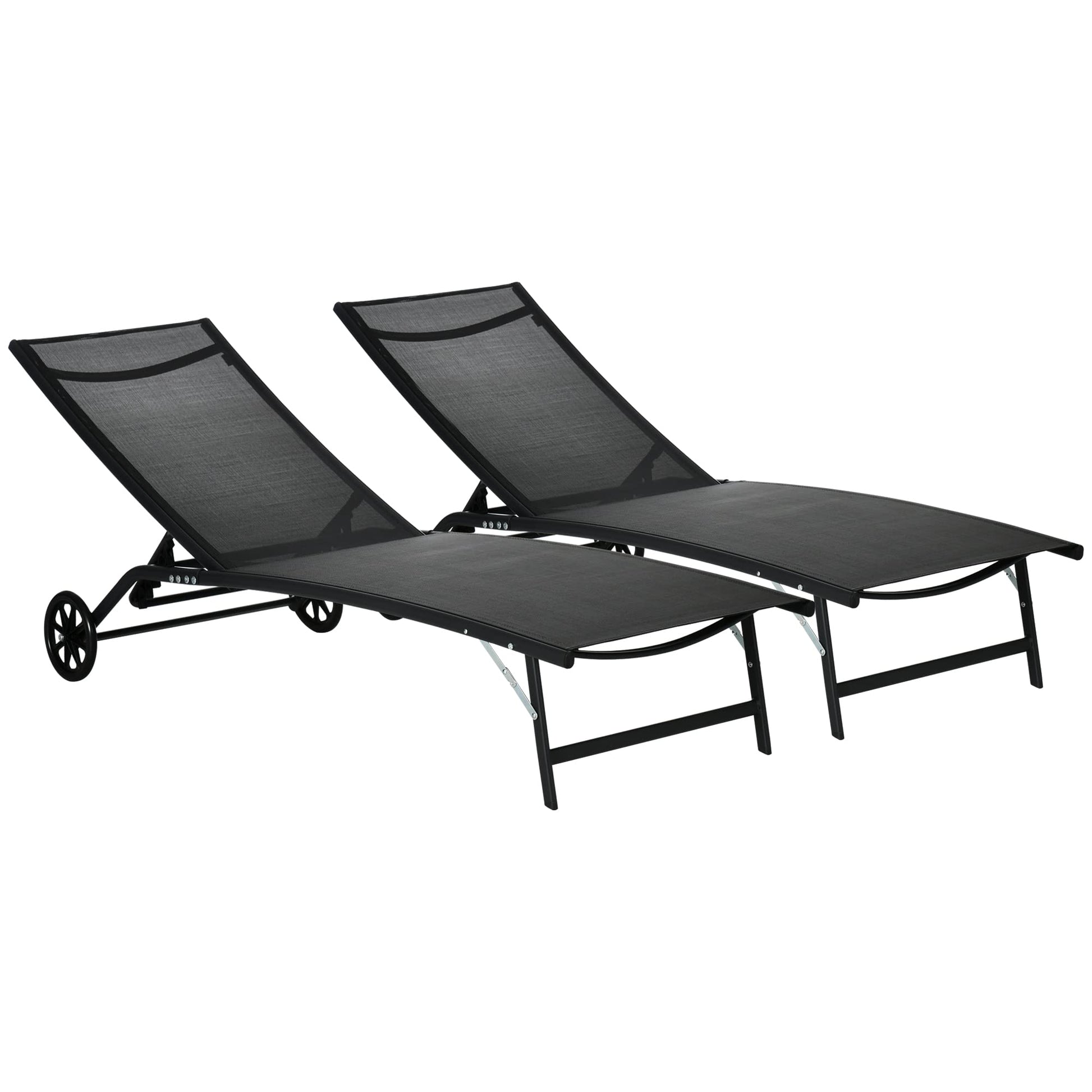 Outdoor, 2 Piece Lounge Chair with Wheels, Tanning Chair with 5 Adjustable Positions