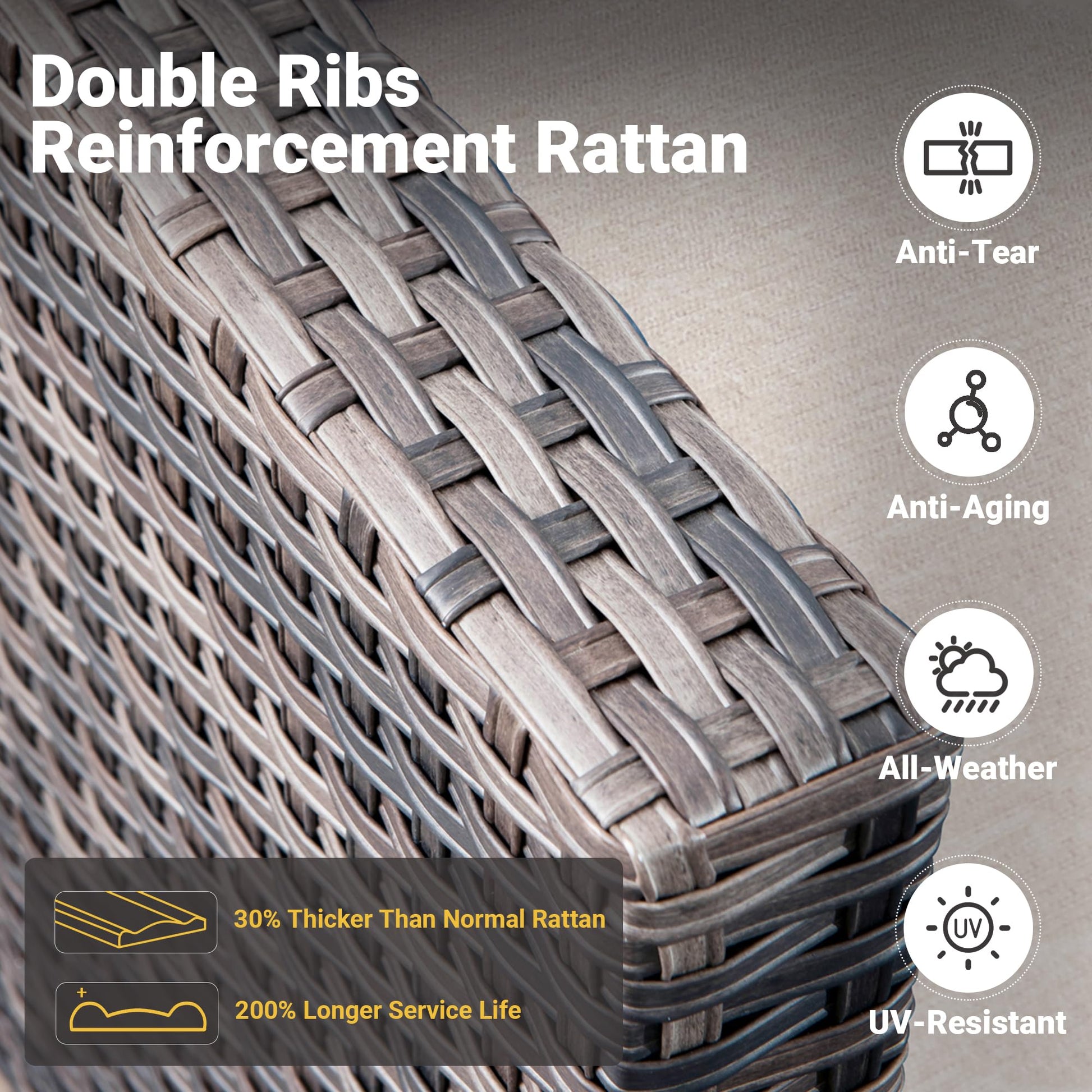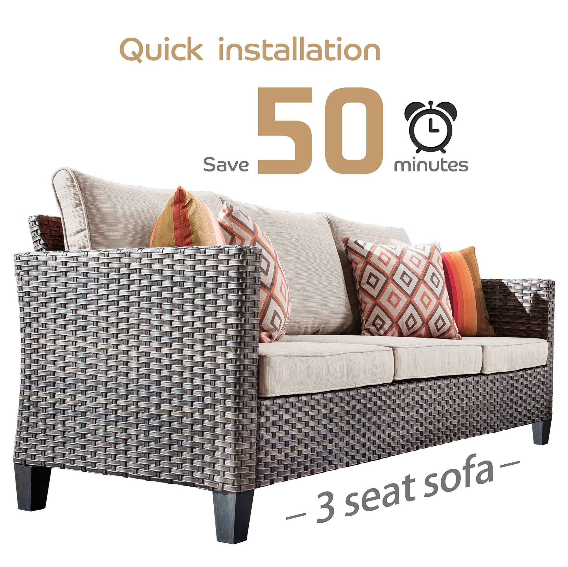 - Premium Wicker Rattan: Our modern outdoor sofa set is designed with a classic natural rattan look, an all-weather sofa made of sturdy rust-resistant steel construction, providing strong support and balance for the patio seats.