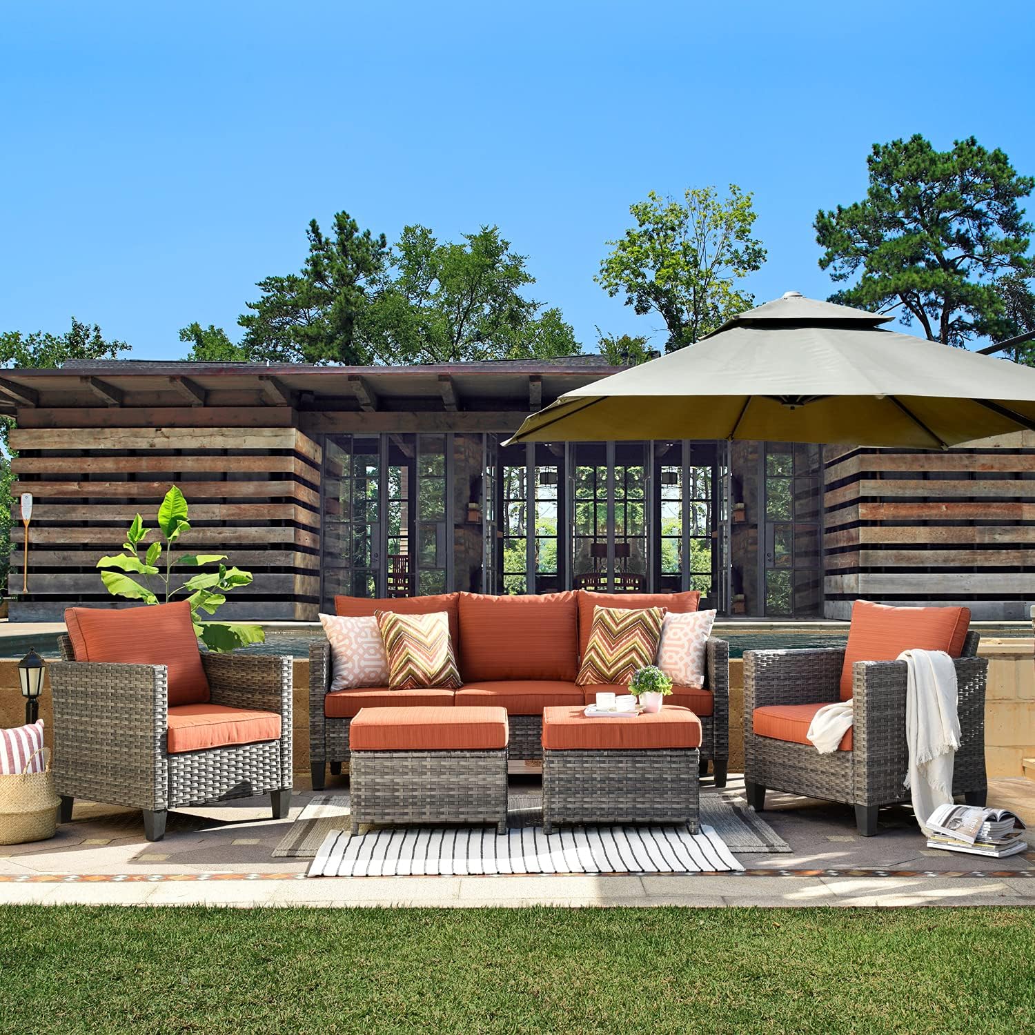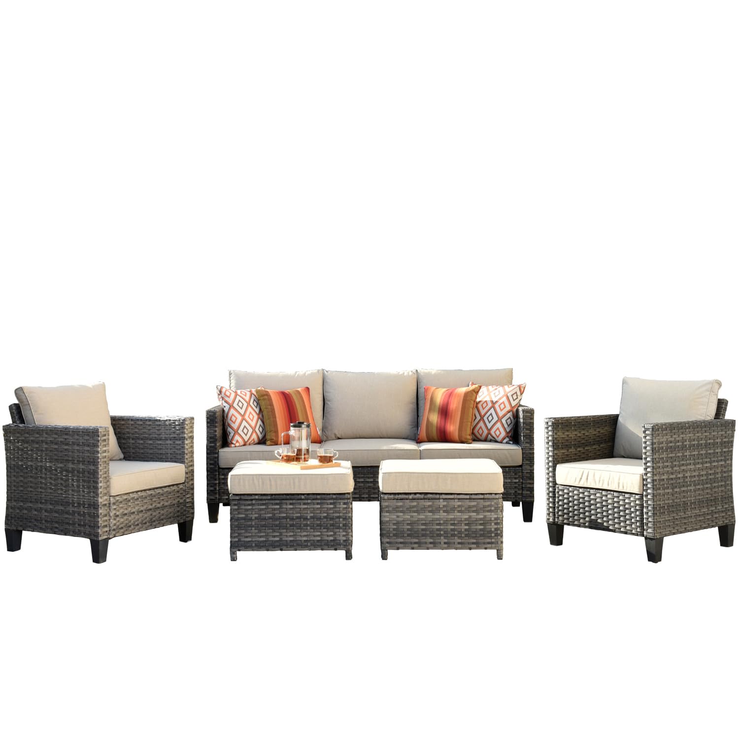 5 Pieces Outdoor Wicker Rattan Sofa Couch with Ottomans