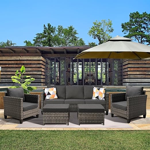 - 7-Seat Furniture: Ottomans can combine the 3-seat sofa, couch, or single chair into a chaise, it can also be used as a coffee table and side table for outside. A 5-piece outdoor patio furniture set comes with all hardware & necessary tools.