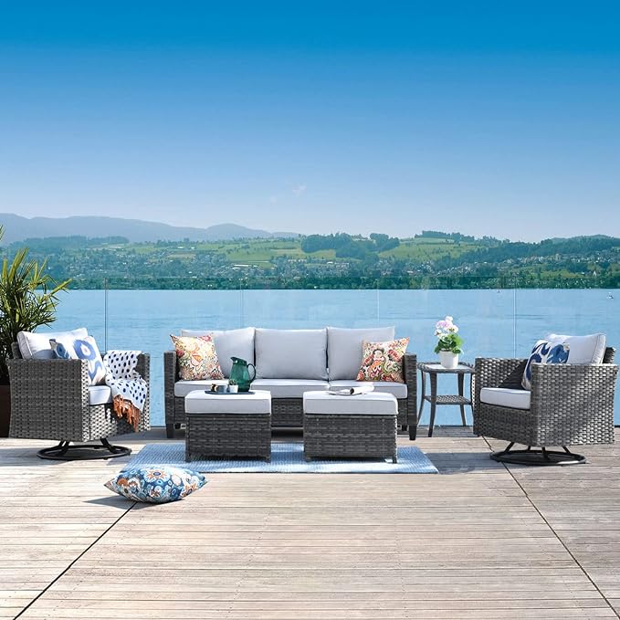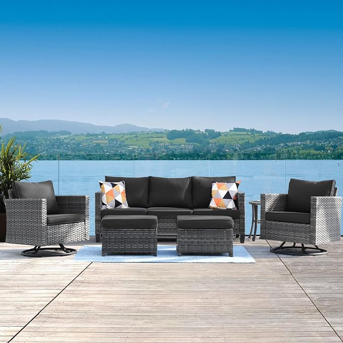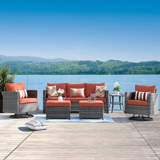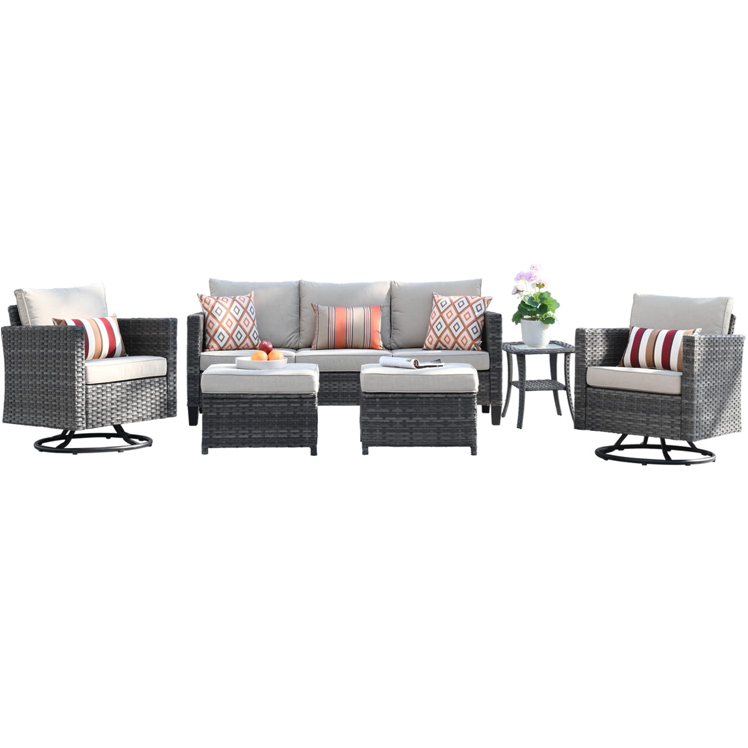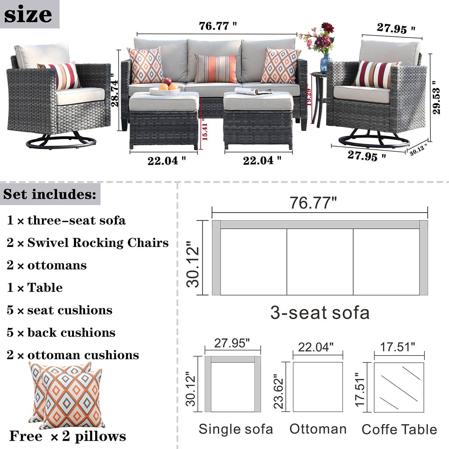 6 Piece Outdoor Sofa Couch with Rocking Swivel Chairs