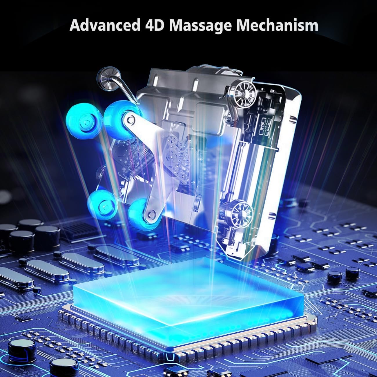 - Ultimate Relaxation for Legs and Feet The calf massage position of this massage chair can be individually adjusted to the user’s size to ensure customized relaxation. The lower leg friction and air pressure massage effectively relieve leg pain and joint fatigue, providing a refreshing feeling. With 3 sets of rollers gently massaging your feet and promoting blood circulation, you will experience a relaxing foot massage that reaches all the way to your toes.4d massage chair