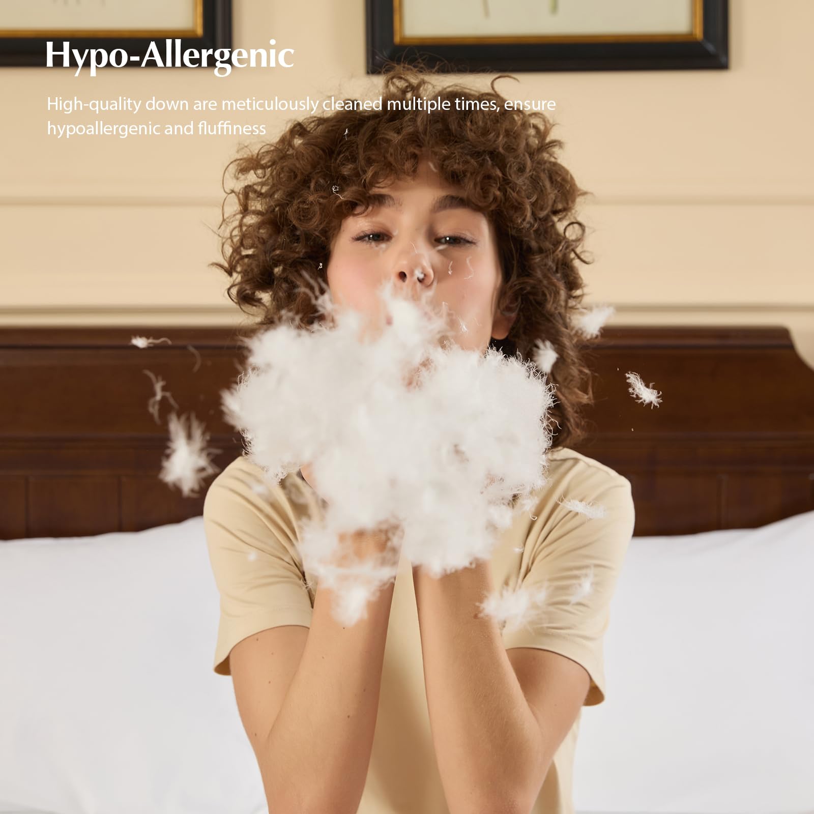 - PREMIUM FILL - We’ve carefully selected luxury down fibers, Our comforter's down and feather fibers is ethically sourced and certified by RDS and OEKO-TEX Standard 100 and multiple washed to giving the comforter an exceptionally soft and luxurious feel. Each cluster is triple-sanitized and allergen-free, cocooning you in guilt-free luxury. Unlike synthetic fills, the nature’s embrace down comforter brings you ultimate sleeping experience.