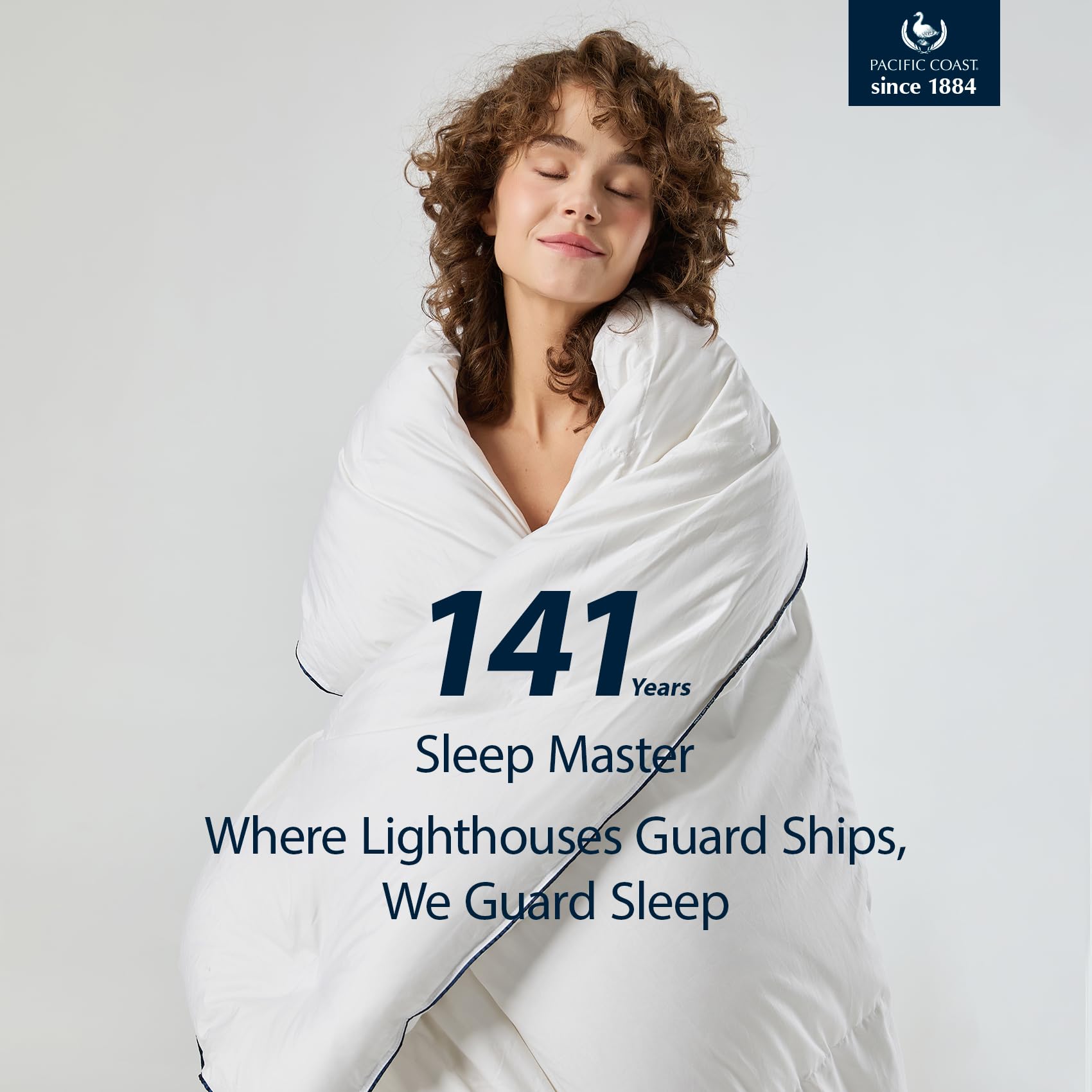 - 141 YEARS, 0 COMPROMISES ON SLEEP - Our down comforter carries 141 years of sleep science, since 1884, Pacific Coast Down Comforters have focused on luxury sleep. Trusted by lots of U.S. luxury hotels. Every stitch inherits artisanal rigor—hand-tested by 4 generations of master craftsmen. When hotels demand perfection, they call us. Now, that legacy rests on your bed.