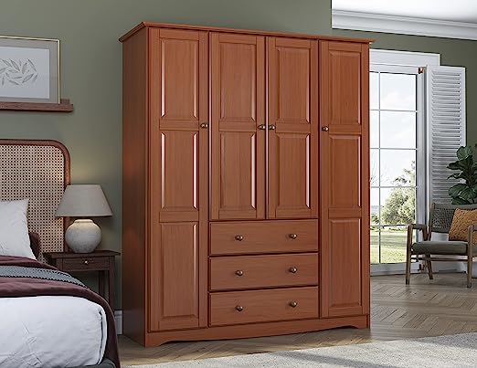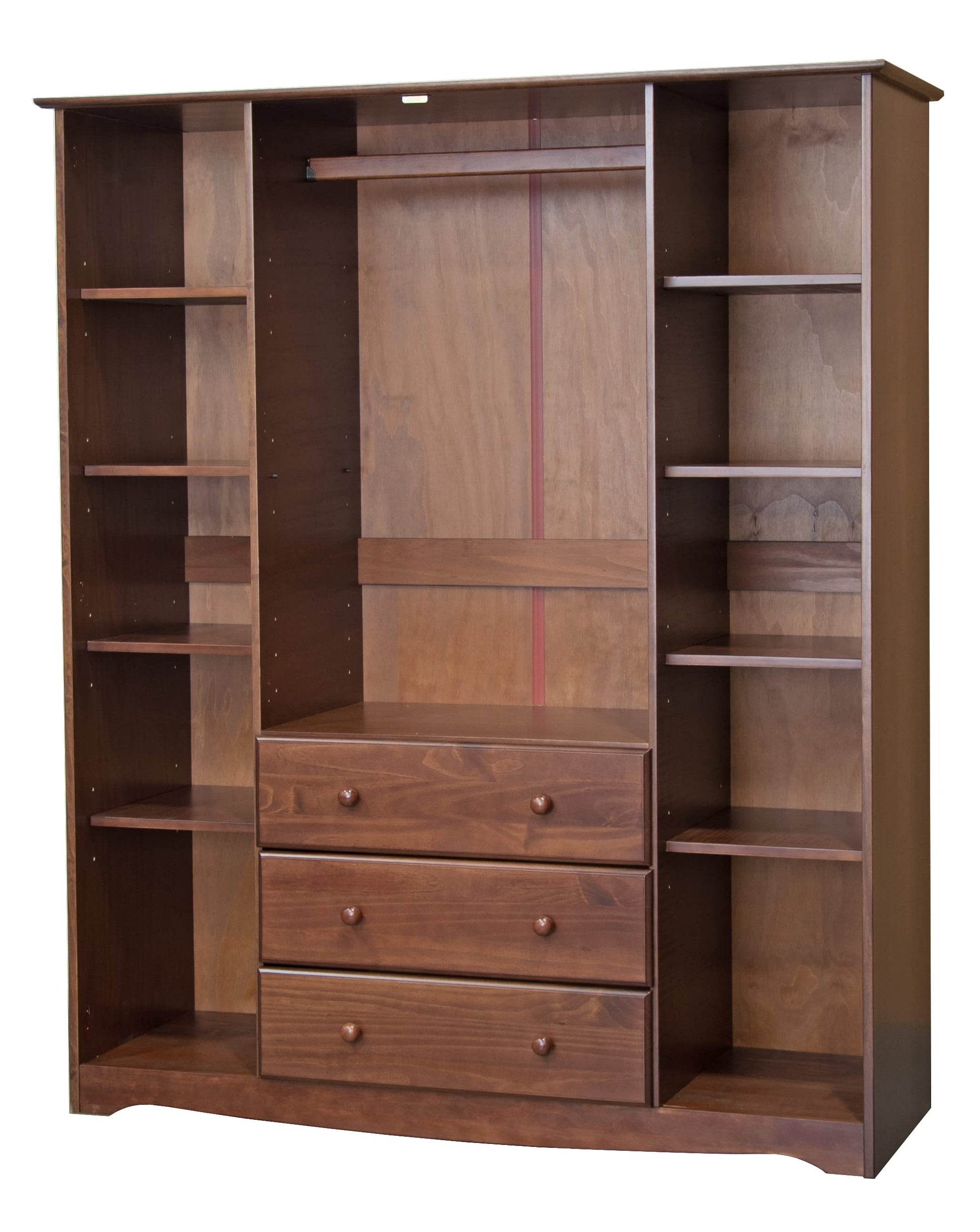 100% Solid Wood Family Wardrobe/Armoire/Closet, Mocha. 3 Clothing Rods Included
