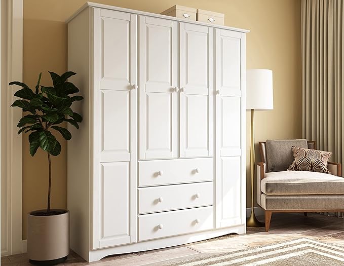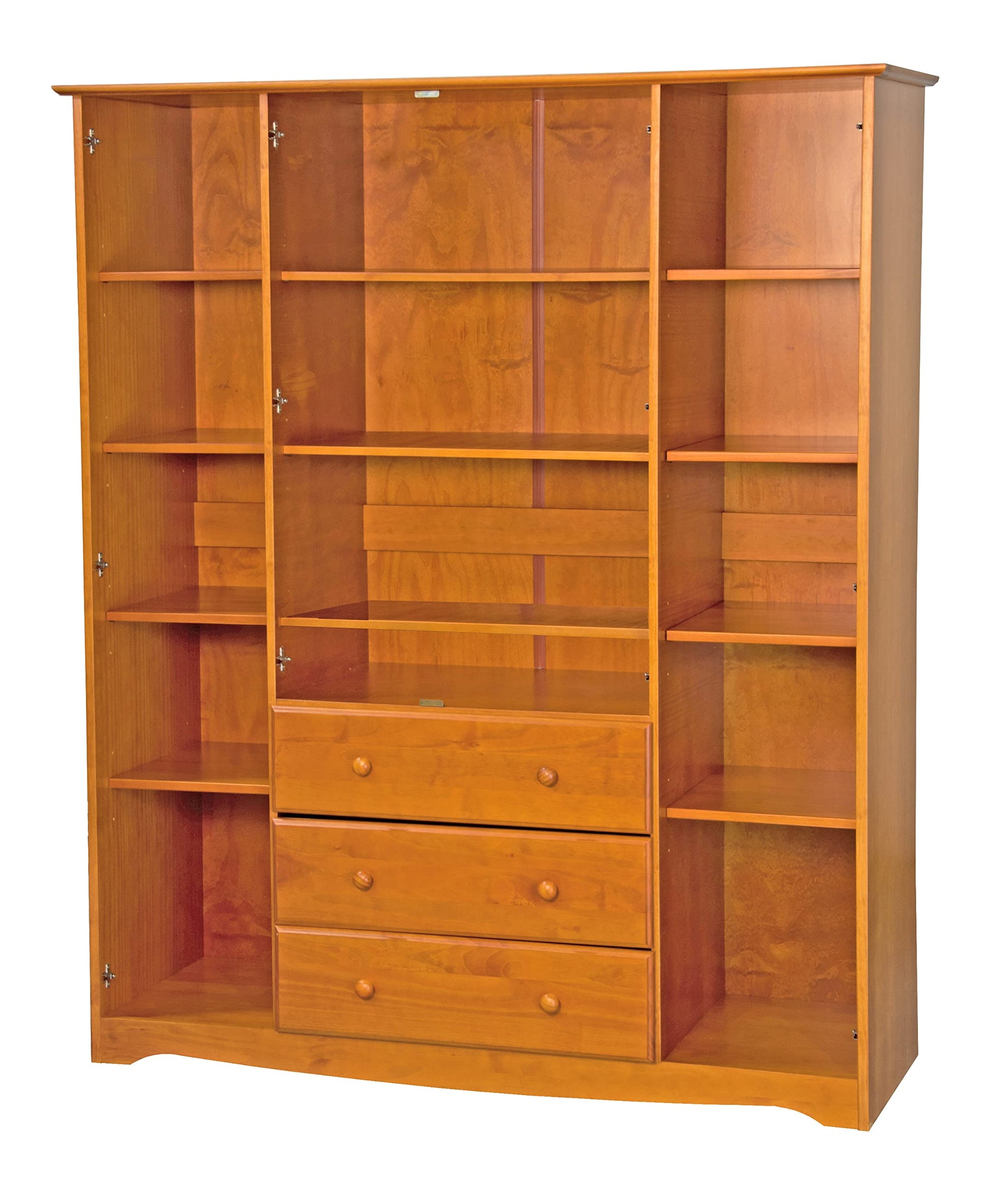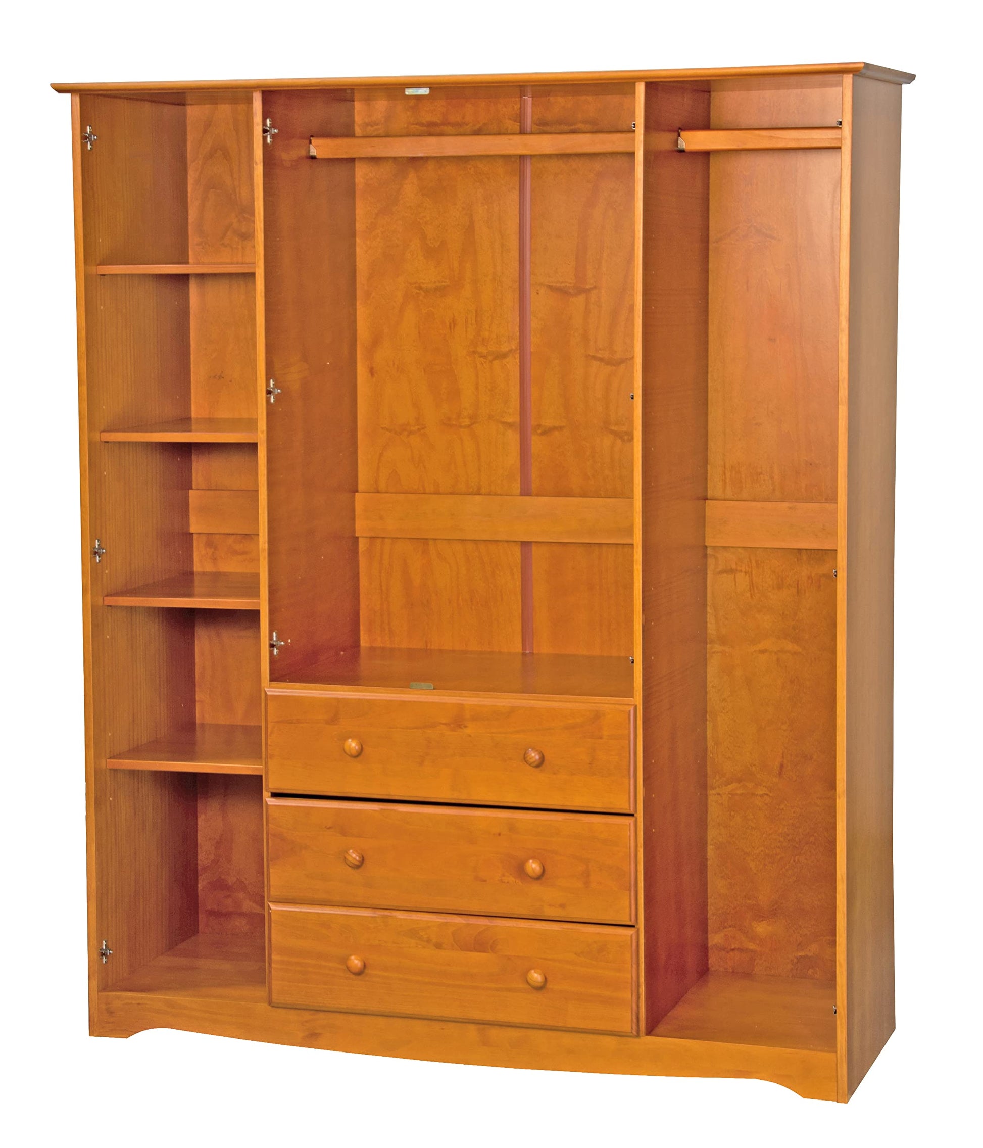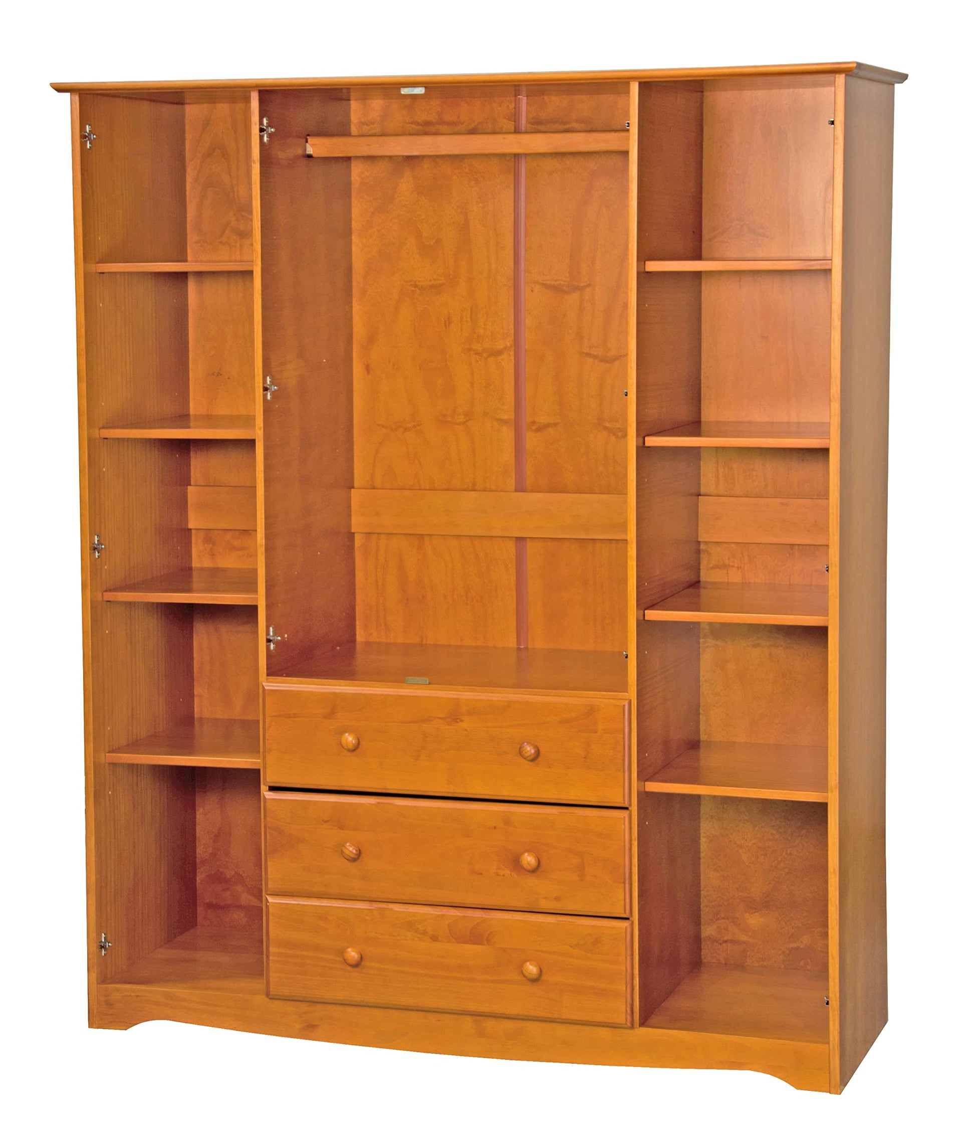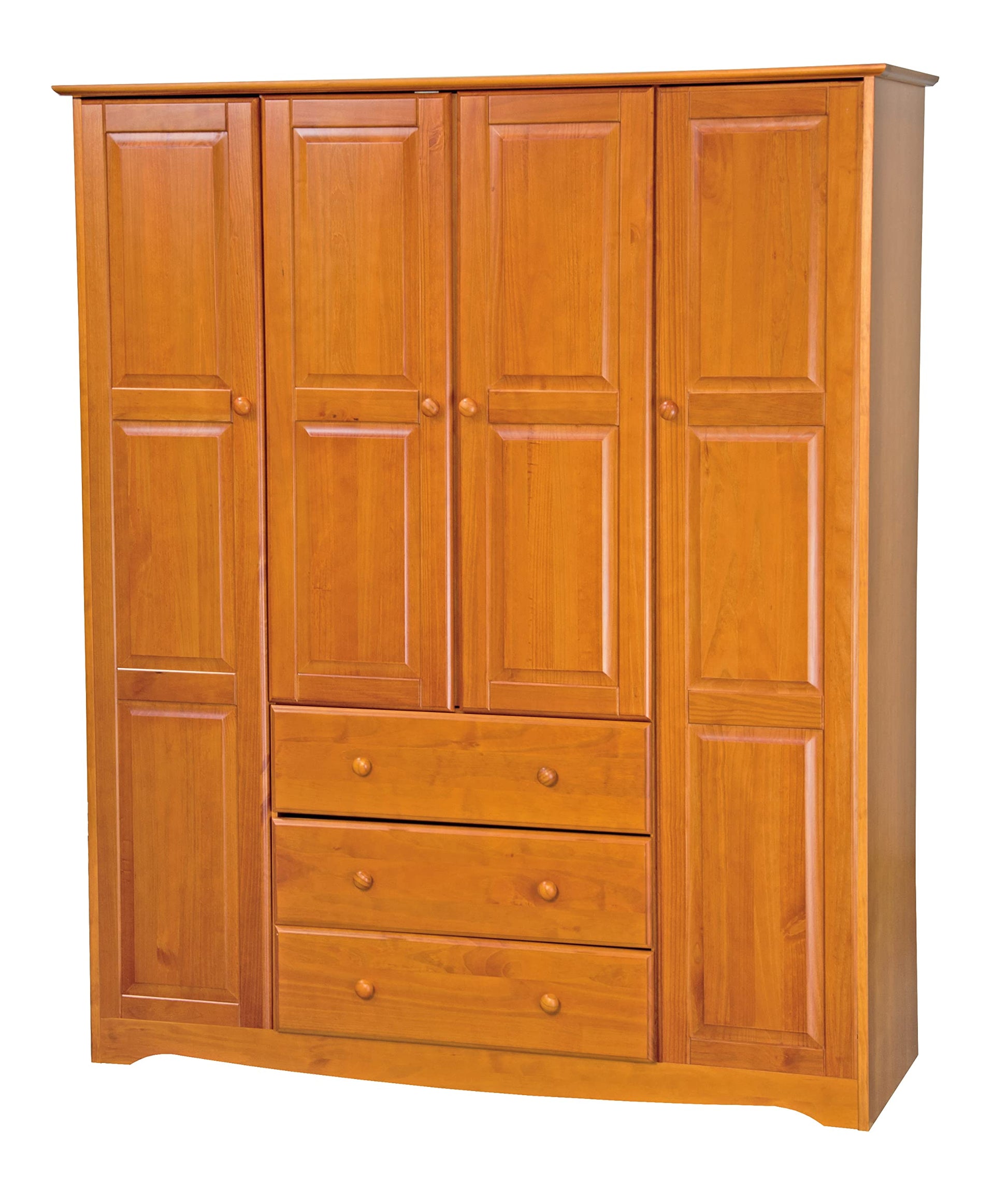 100% Solid Wood Family Wardrobe Closet/Armoire, Honey Pine. 3 Clothing Rods Included