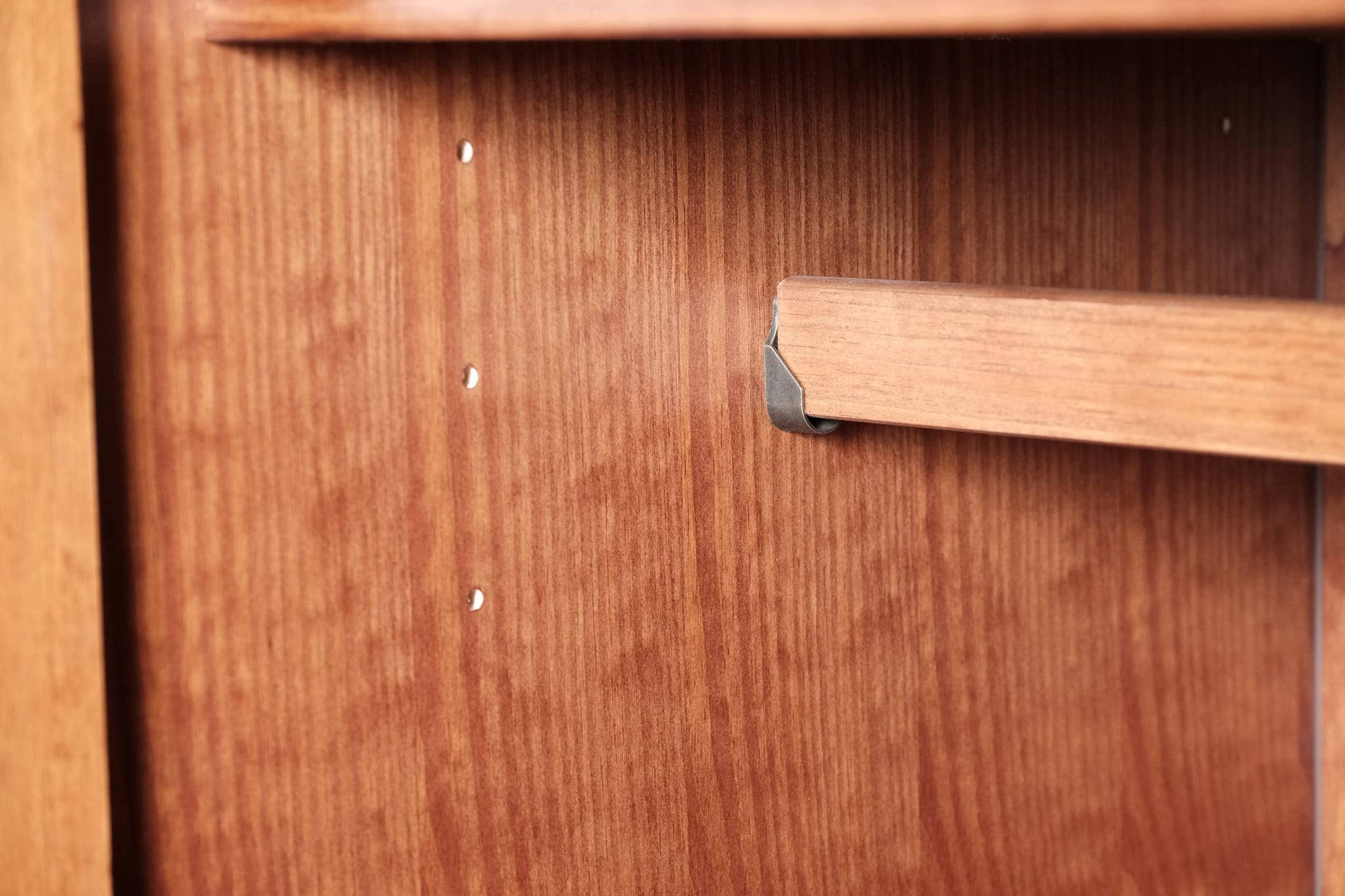 - Includes 1 fixed shelf and 3 clothing rods, 4 raised panel doors on 3 adjustable self-closing metal Euro concealed hinges (additional small, large shelves, 2-drawer internal unit sold separately)