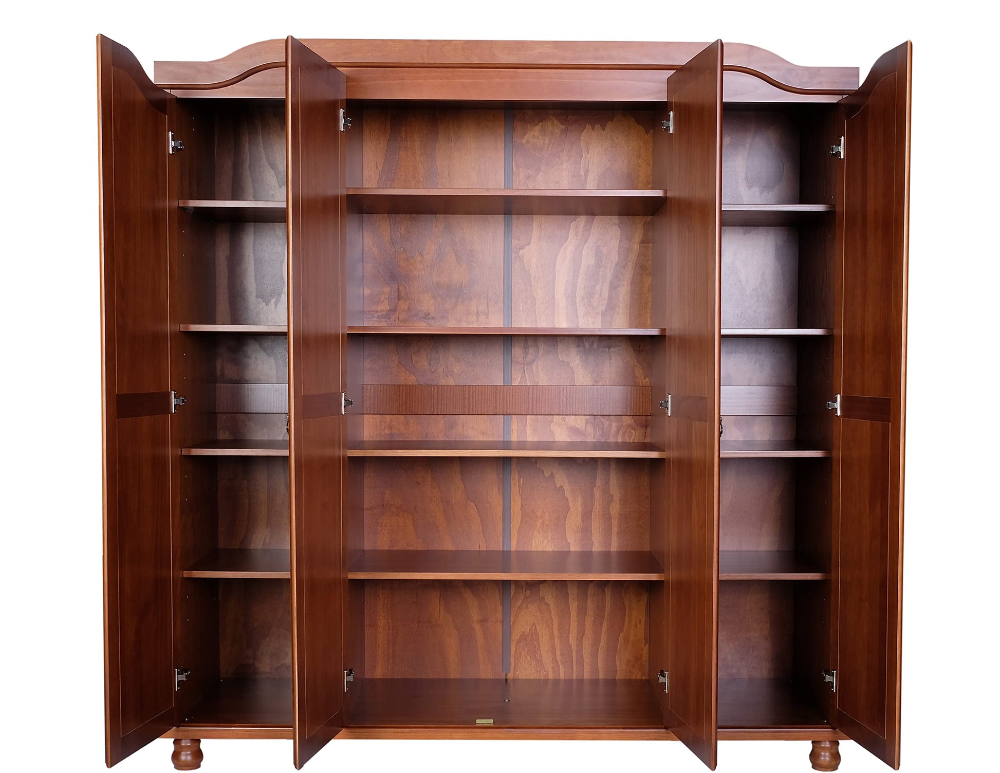 100% Solid Wood Kyle 4-Door Wardrobe Armoire Closet with Mirrored Doors