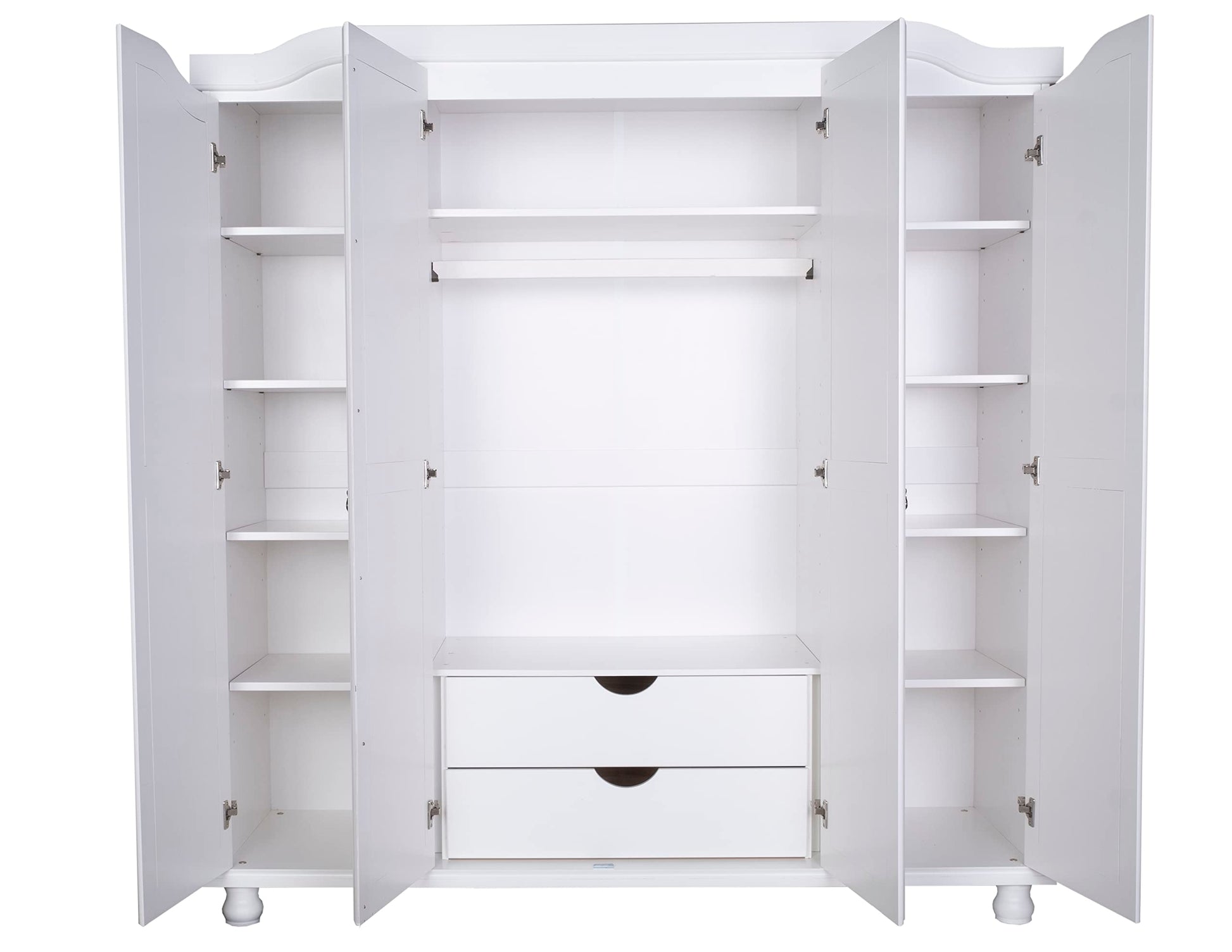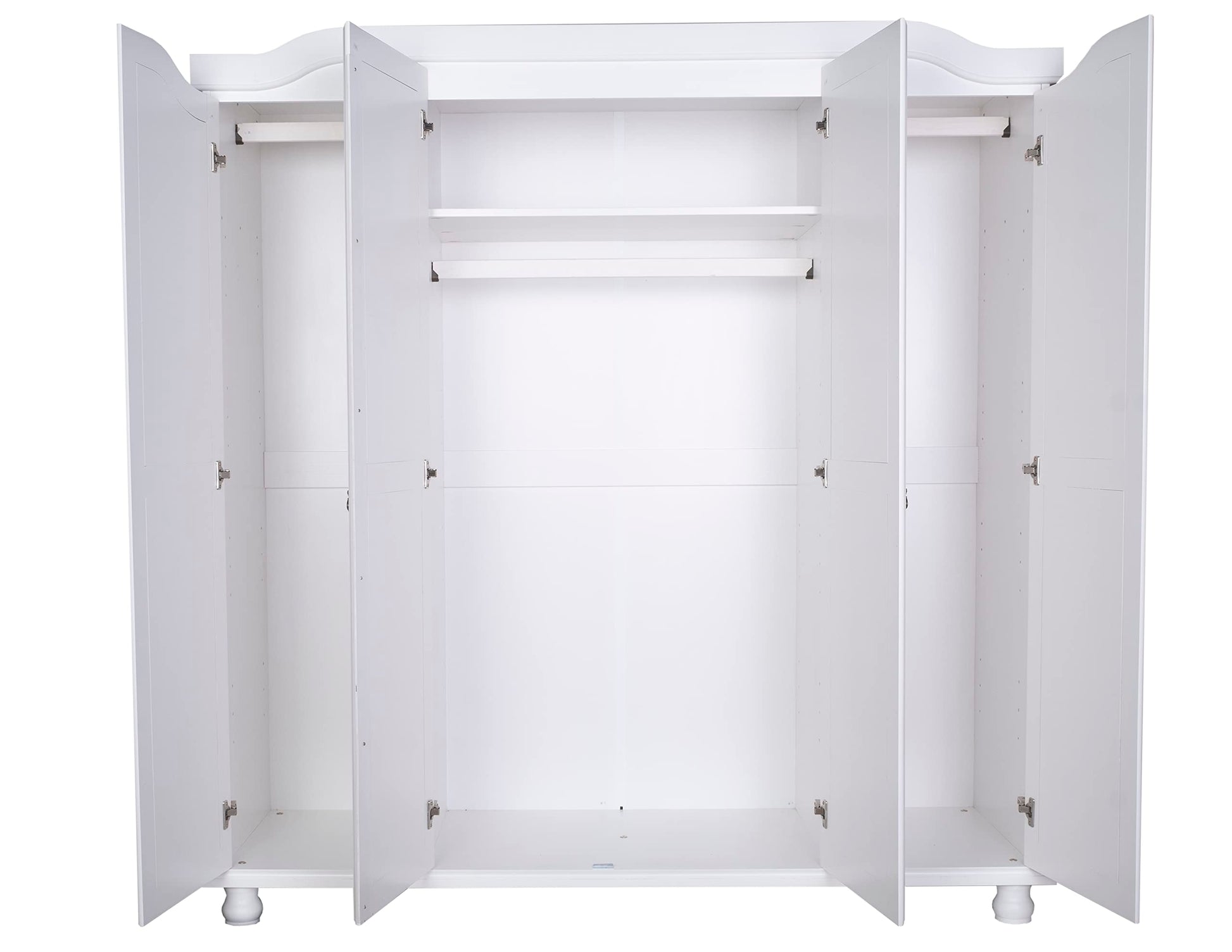 - Includes 1 fixed shelf and 3 clothing rods,4 raised panel doors on 3 adjustable self-closing metal Euro concealed hinges (additional small, large shelves, 2-drawer internal unit sold separately)