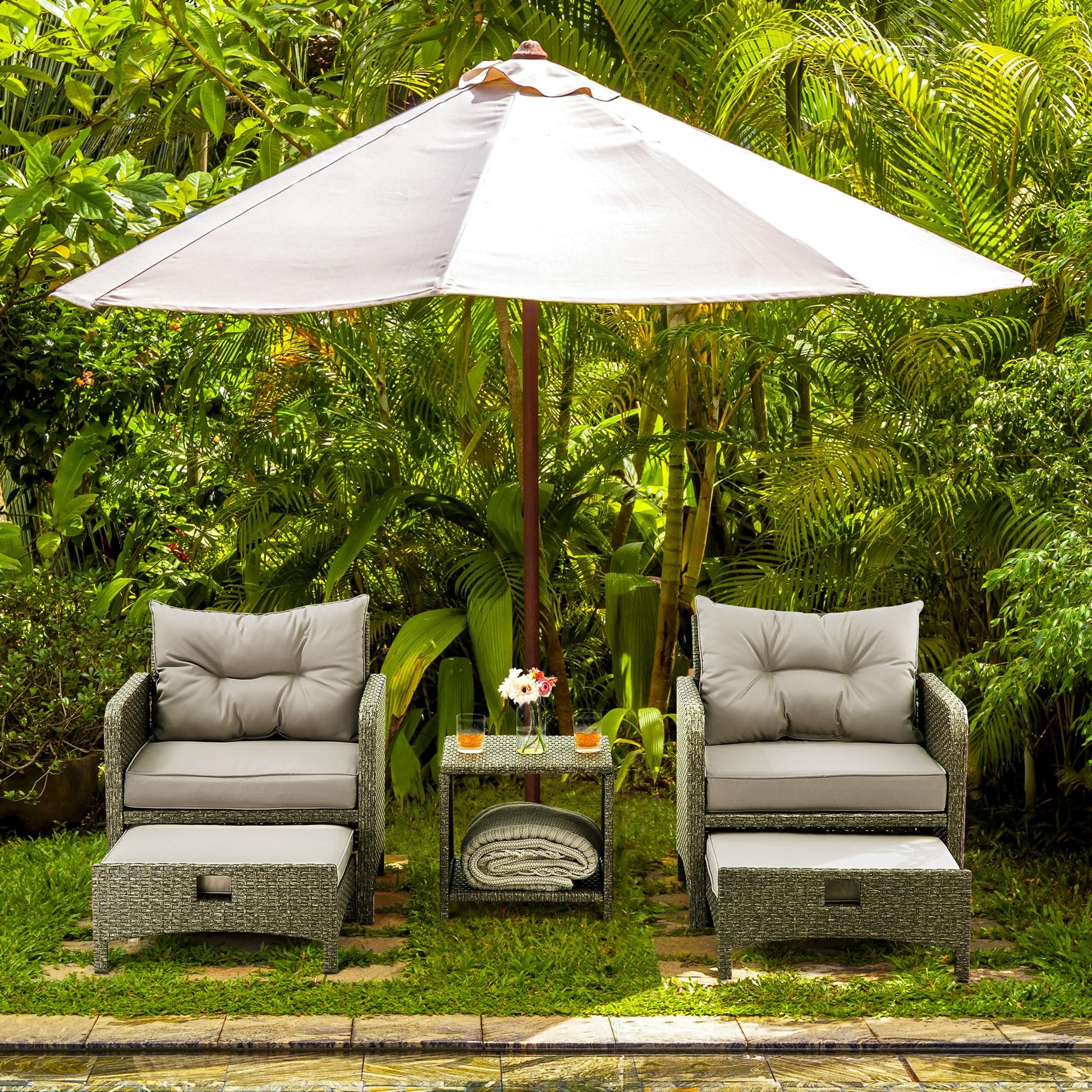 5 Pieces Outdoor Patio Wicker Chairs Set with Ottoman