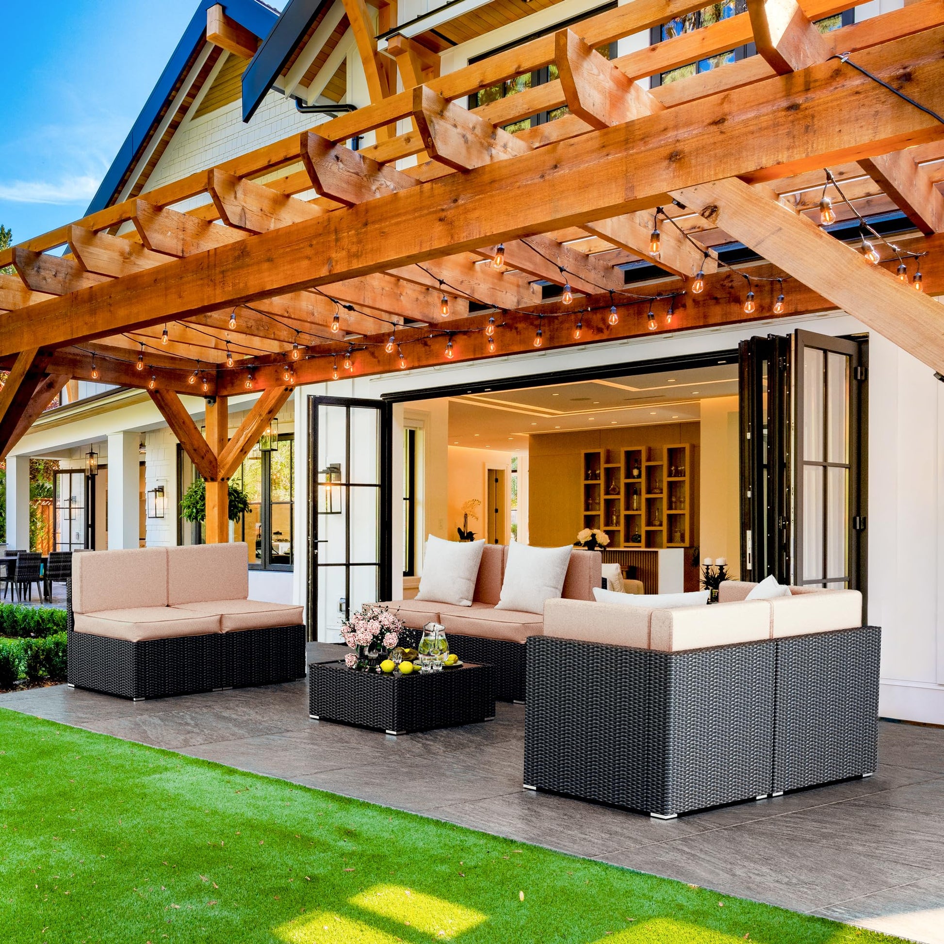 - SECTIONAL & L SHAPED OUTDOOR SOFA: 7 7-piece patio sectional couches can be freely assembled into a set. You can choose a combination based on your needs.