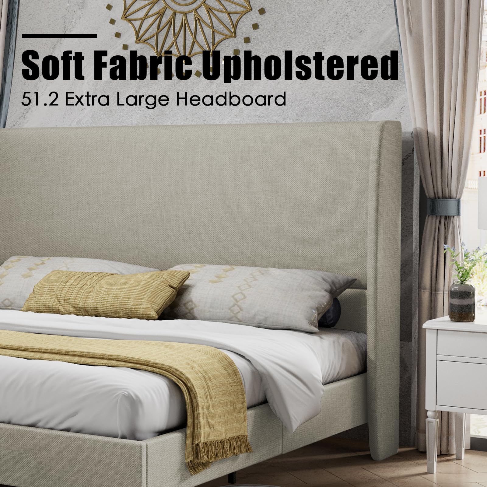 Queen Platform Bed Frame 51.2" High Headboard Tall Upholstered Bed/No Box Spring