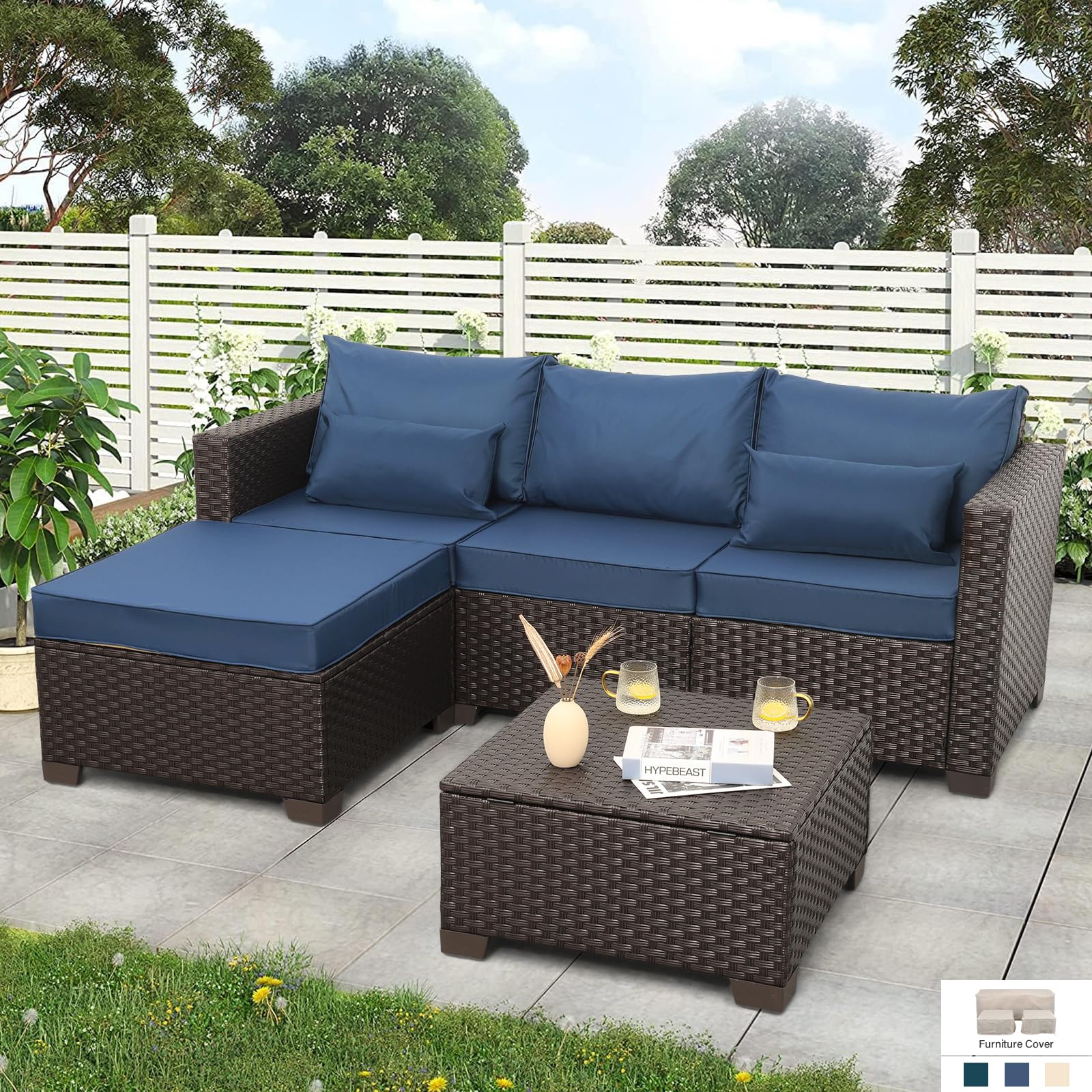 - Highly Adaptable: The patio furniture sets can be freely combined according to different occasions. Widely used for outdoor patio, porch, backyard, balcony, pool, garden, and other suitable space in your home. The patio storage table allows storing multiple items for easy access anytime, greatly enriching your outdoor life