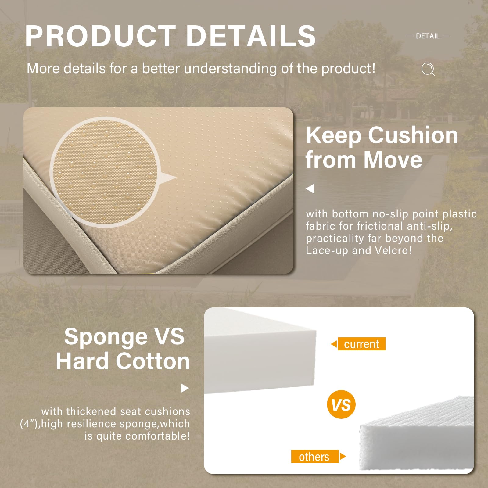 - Comfortable & no-slip: Seat cushions(4") with high resilience sponge and bottom anti-slip dotted plastic fabric, anti-slip, and practicality are wholly better than lacing, velcro, or hook, match-up filling back cushions, which is extraordinarily comfortable and everlasting with outdoor sectional sofa. Free lumbar pillow style randomly.