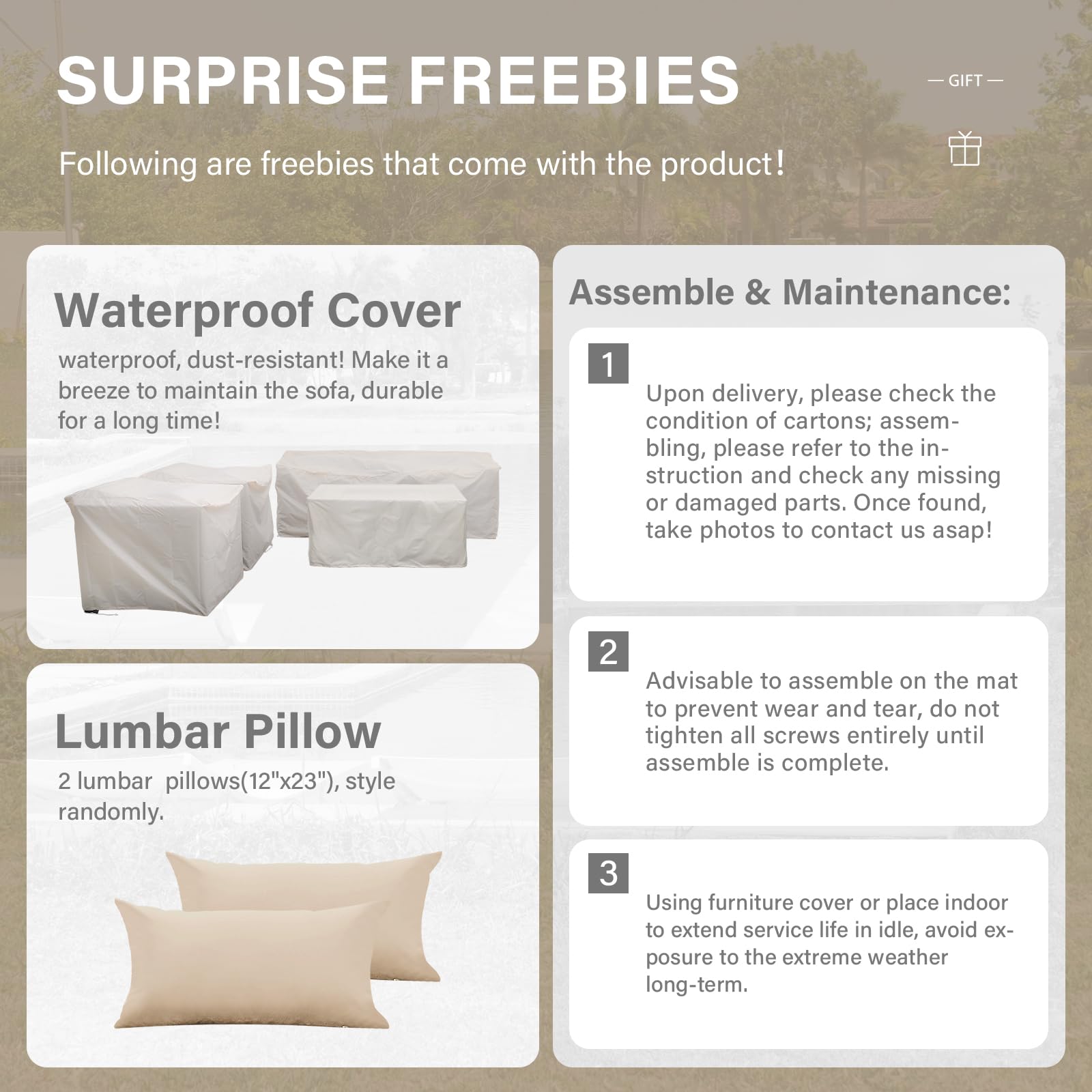 - Packaging & Assembly: The patio sectional is packed in 3 boxes. Clear instructions and all necessary hardware for smooth assembly, as well as an Assembly Demo Video available.