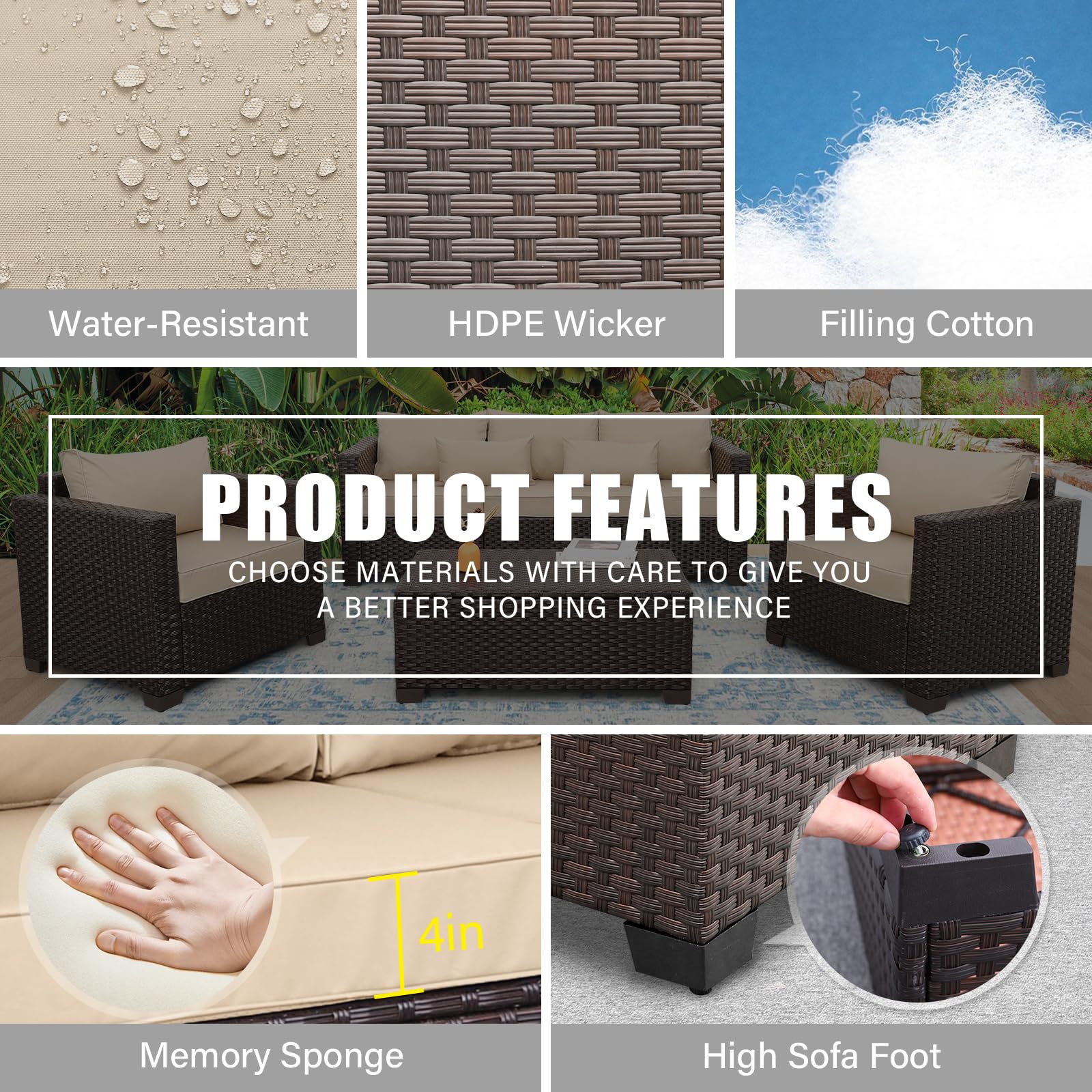 - Quality & Maintain: Delicate composite weaving with 3-stand HDPE wicker handwoven over fully-welded powder-coated steel framing makes outdoor conversation sets 4 PCS durable and sturdy. Polyester Anti-UV and water-repellent fabric with long-lasting comfort, color retention, cleanability, and strength; waterproof covers, fearless dust, rain, sun, and long-term use.